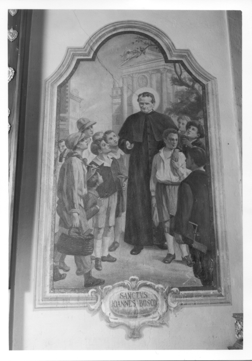 - ISCRIZIONI Nella cartella in basso al centro della cornice - SANCTUS/ JOANNES BOSCO - lettere capitali -