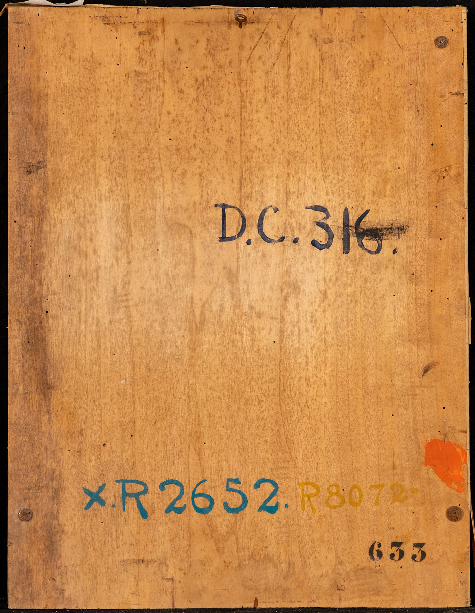 - ISCRIZIONI Sul retro della tavola, in nero - D.C. 316 - a pennello -