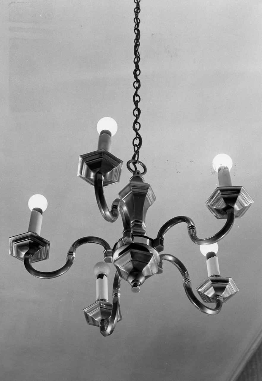 - NOTIZIE STORICO CRITICHE Un lampadario presenta nove luci, due ne hanno cinque.Il lampadario grande è stato stimato Lire 4.000.000; quelli piccoli Lire 3.000.000 ciascuno