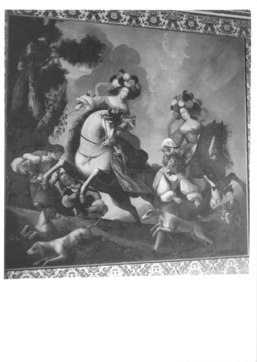 - NOTIZIE STORICO CRITICHE Il dipinto è stato avvicinato da A. Griseri (1963) all'incisione di G. Tasnière tratta dal dipinto, dato per disperso, di Giorgio Sandri Trotti di Mombasiglio raffigurante "Elisabetta Maria Francesca di Savoia regina del Portogallo e Giovanna Francesca d'Estrade" e realizzato per il salone di Diana alla Venaria Reale. L'attribuzione della tela a C. Dauphin coadiuvato da Giorgio Sandri Trotti di Mombasilio è stata accolta dalla critica successiva