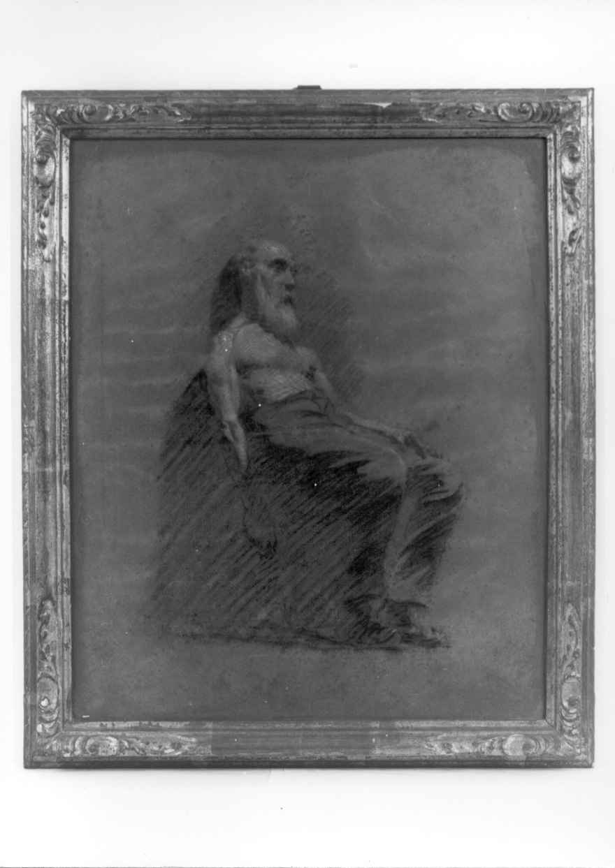 - ISCRIZIONI retro, foglio, in alto, etichetta argente o - S. 45 C. O. STROCCO/ VECCHIO MENDICANTE - corsivo - a matita -