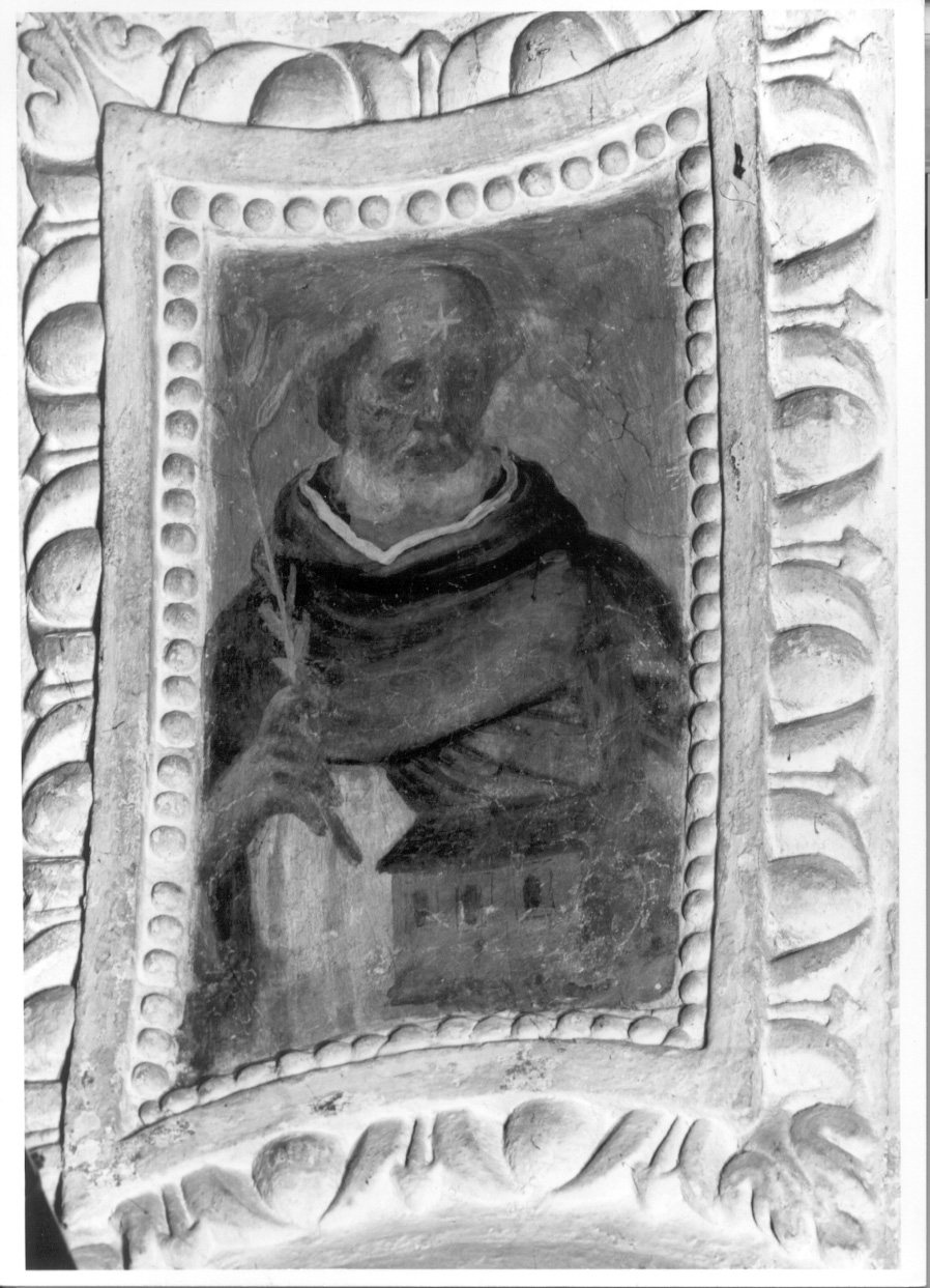 Personaggi: San Domenico. Attributi: (S. Domenico) stella in fronte; giglio; veste da domenicano