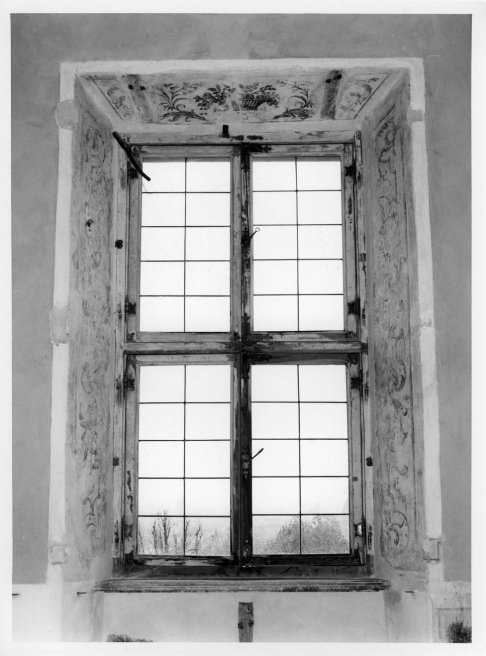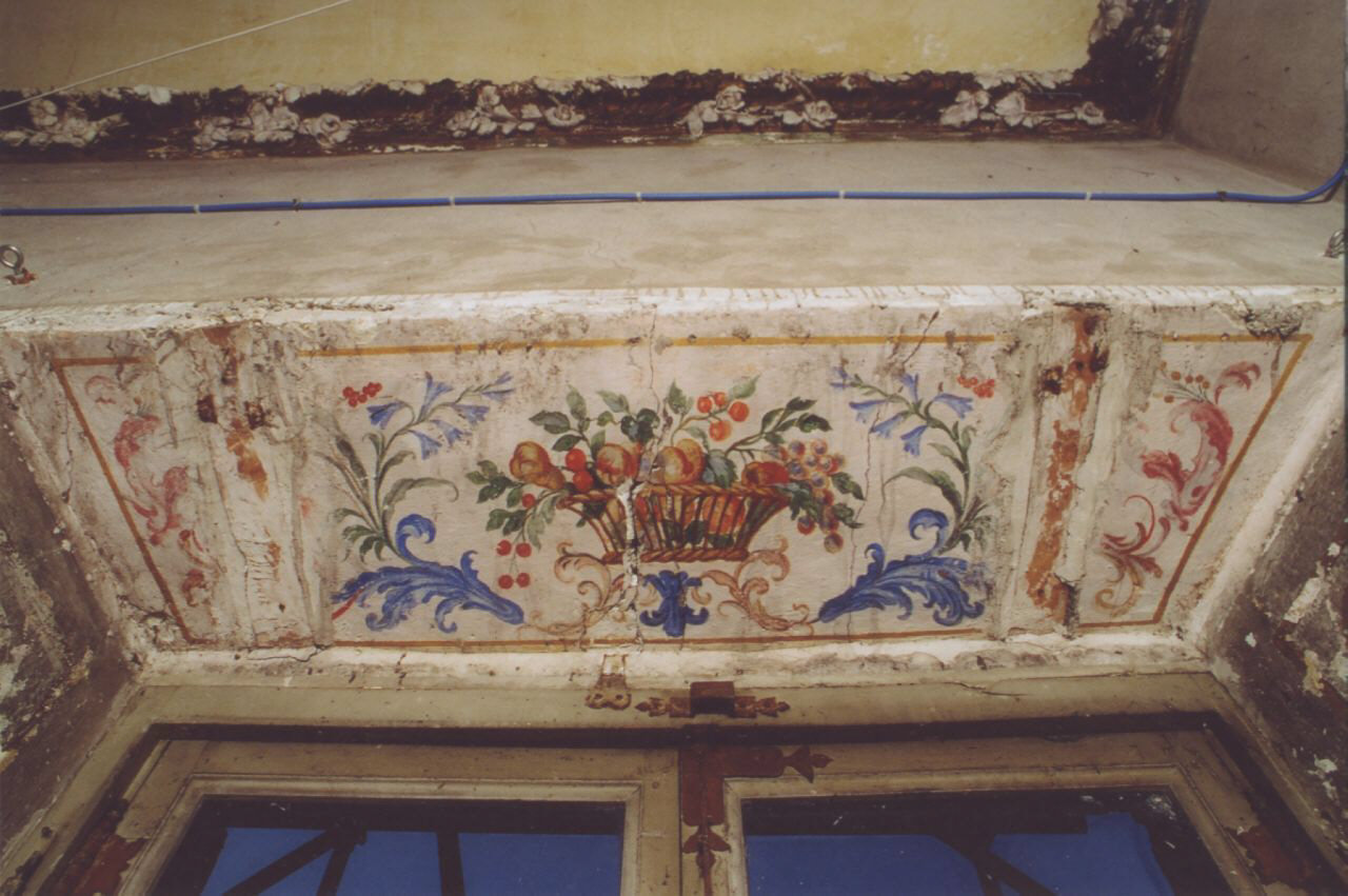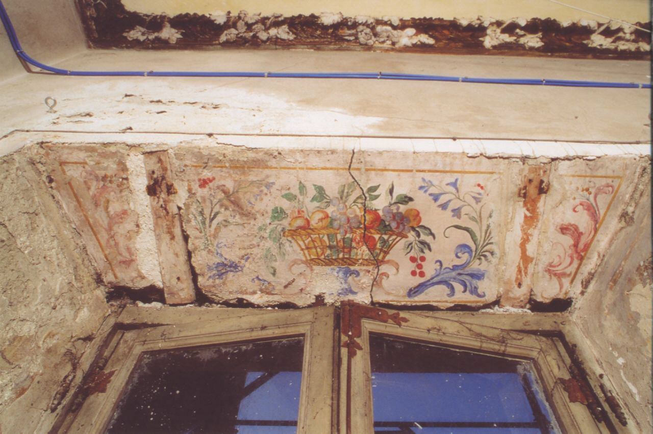 La decorazione pittorica degli sguinci di finestra prevede sulle pareti motivi decorativi d'ispirazione vegetale e sui voltini un cesto con frutta tra rami fioriti
