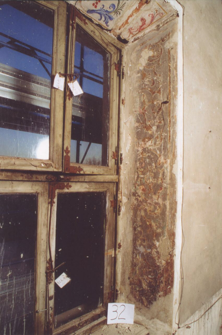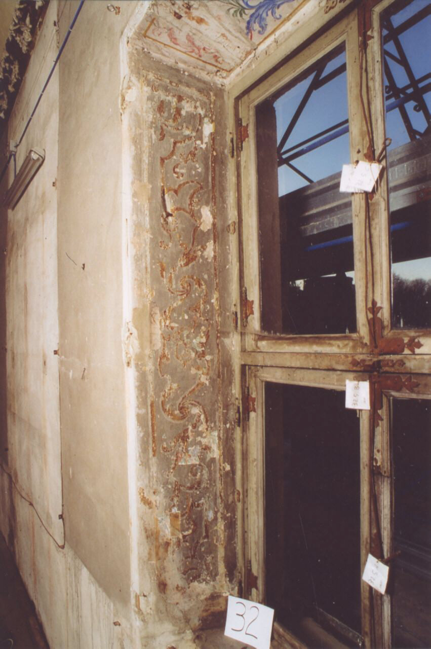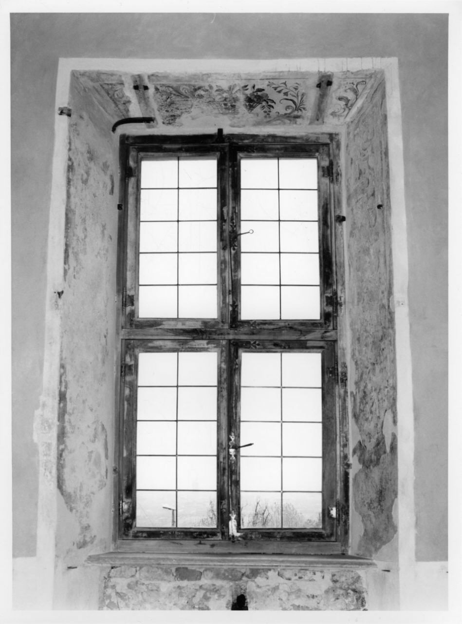 La decorazione pittorica degli sguinci di finestra prevede sulle pareti motivi decorativi d'ispirazione vegetale e sui voltini un cesto con frutta tra rami fioriti
