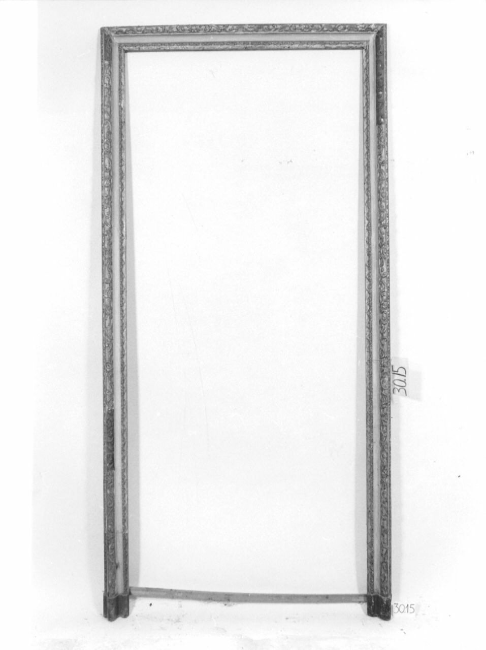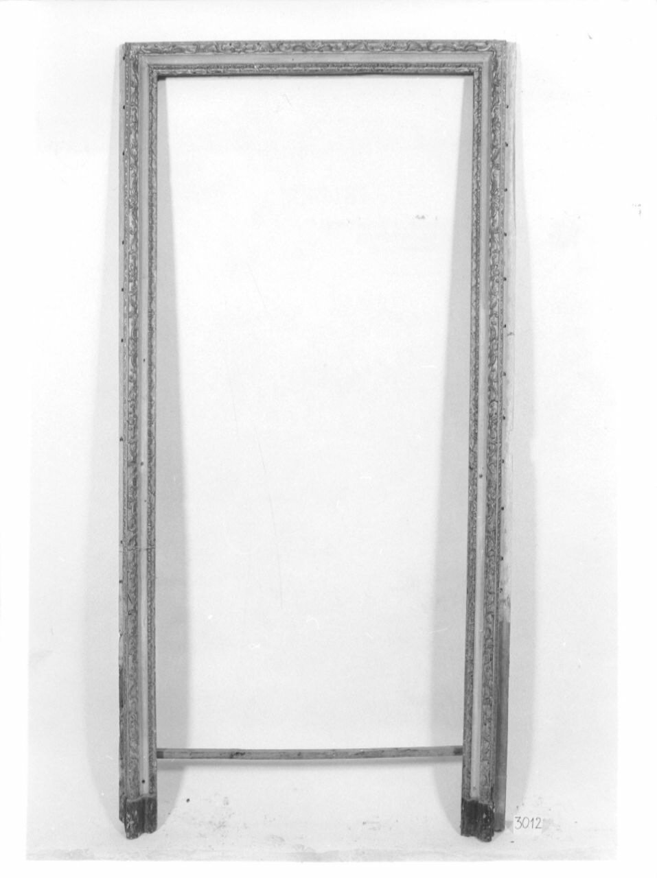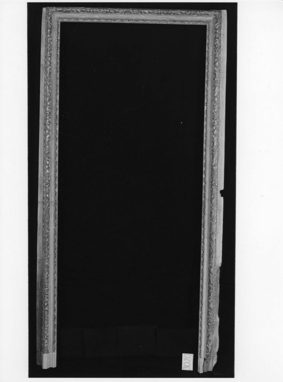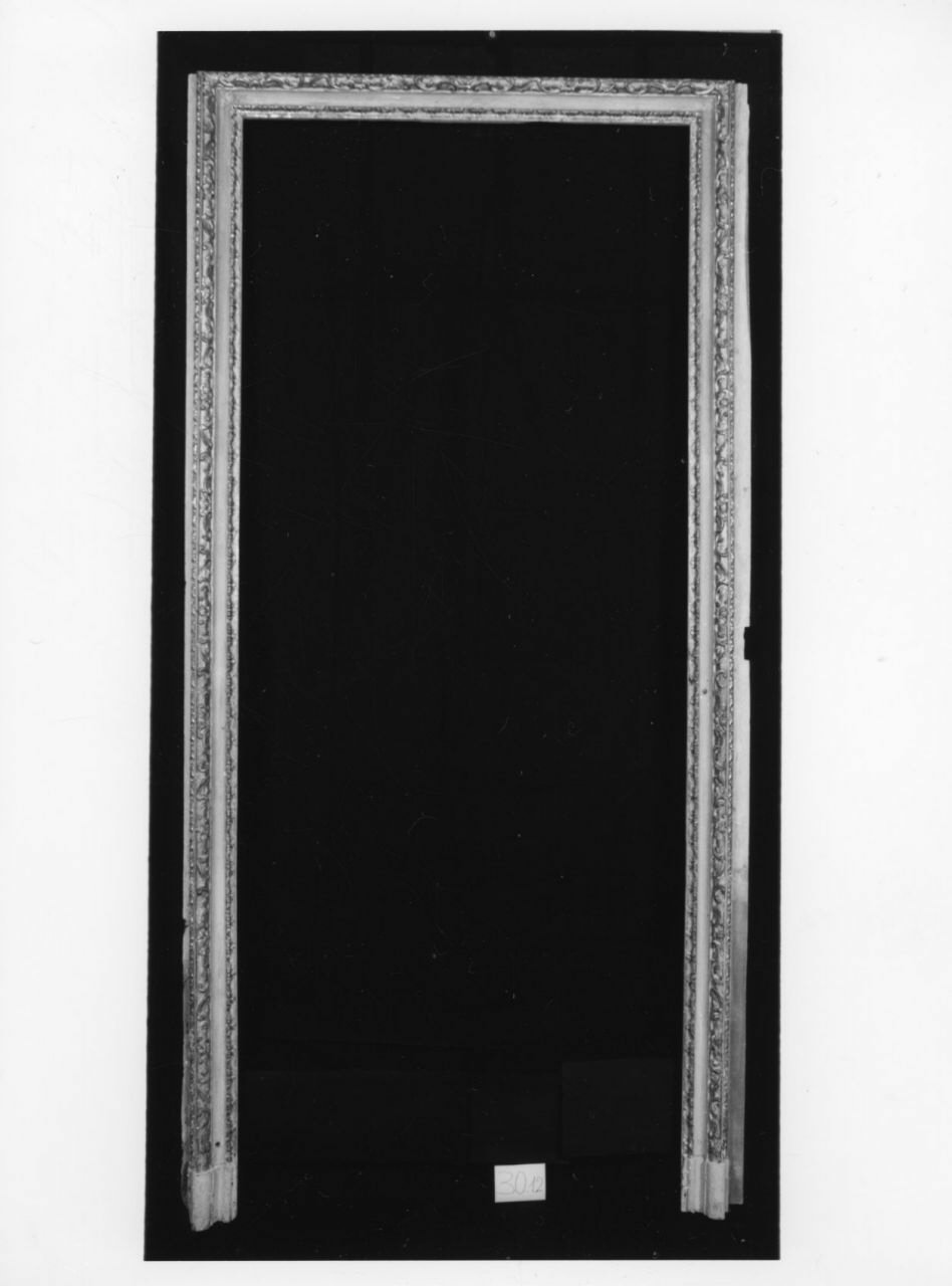 - NOTIZIE STORICO CRITICHE L'"Inventaro de mobili, ed altri oggetti esistenti nel Palazzo della Vigna di S. M." (Torino, Biblioteca Reale - sc. 45) compilato nel 1755 offre una prima sommaria descrizione delle cornici delle quattro porte che si aprono nella pareti nord, ovest e sud della "Camera verso Levante detta del Trucco" dell'Appartamento del Re: "Quattro chiambrane con intagli dorati in fondo griggio". La stessa succinta descrizione è riportata nel successivo inventario redatto nel 1767. Le cornici furono quindi fin dall'inizio dipinte in grigio, come conferma anche l'"Inventario di tutti li mobili, oggetti di addobbamento ed altri diversi di Regia Spettanza esistenti nel Palazzo della Vigna Reale detta della Regina e nelli fabbricati dipendenti [...]" (ASTO, Corte, Archivi Privati, Castelli Berroni - m. 19) posti sotto la custodia del consierge Felice Boozoky nel 1845, che registra nella "Prima camera a levante arrivando dal Salone" negli Appartamenti Reali a mezzanotte, "quattro stipiti di porta colorite bigio con tre membrature e cappelletto intagliato e dorato aventi li sovraporta dipinti [...]". Indicazioni utili si ricavano anche dai "Testimoniali di Stato della Vigna della Regina ed annesso Palazzo Chiablese" (ASTO, Corte, Istituti Assistenza e Beneficenza - cat. 11, m. 653) compilati nel 1864 che, indicando la stanza ormai solo con il numero 20, segnalano la presenza di "N. 4 stipiti con sopraporta per le aperture interne [...] corrispondente a quelli descritti al N. 19 [aventi tre membrature intagliate e dorate con capello avente due membrature ed ornati pure intagliati e dorati su fondo bigio scuro]". Nel 1942 Eugenio Olivero parla ormai solo di "semplici cornici scolpite e dorate" (E. Olivero, La Villa della Regina in Torino, Torino 1942, p. 26). Le quattro cornici, indicate nell'inventario corrente con i numeri 30.20, 30.12, 30.15 e 30.17, sono attualmente in corso di restauro presso il laboratorio di restauro Gioia Rinetti. La cornice 30.15 presenta delle integrazioni negli intagli della parte superiore, a destra, e in basso a sinistra forse risalenti ai lavori di ristrutturazione della villa iniziati nel 1948 a causa dei gravi danni subiti dall'edificio nel corso dei cinque bombardamenti che tra il novembre 1942 e l'agosto del 1943 provocarono il crollo di parte delle strutture del primo piano nobile (cfr. S. Garnero, Dai danni di guerra agli anni sessanta. Documenti sugli interventi di manutenzione, in C. Mossetti, a cura di, Villa della Regina. Diario di un cantiere in corso, Torino 1997, pp. 113-114, 116)