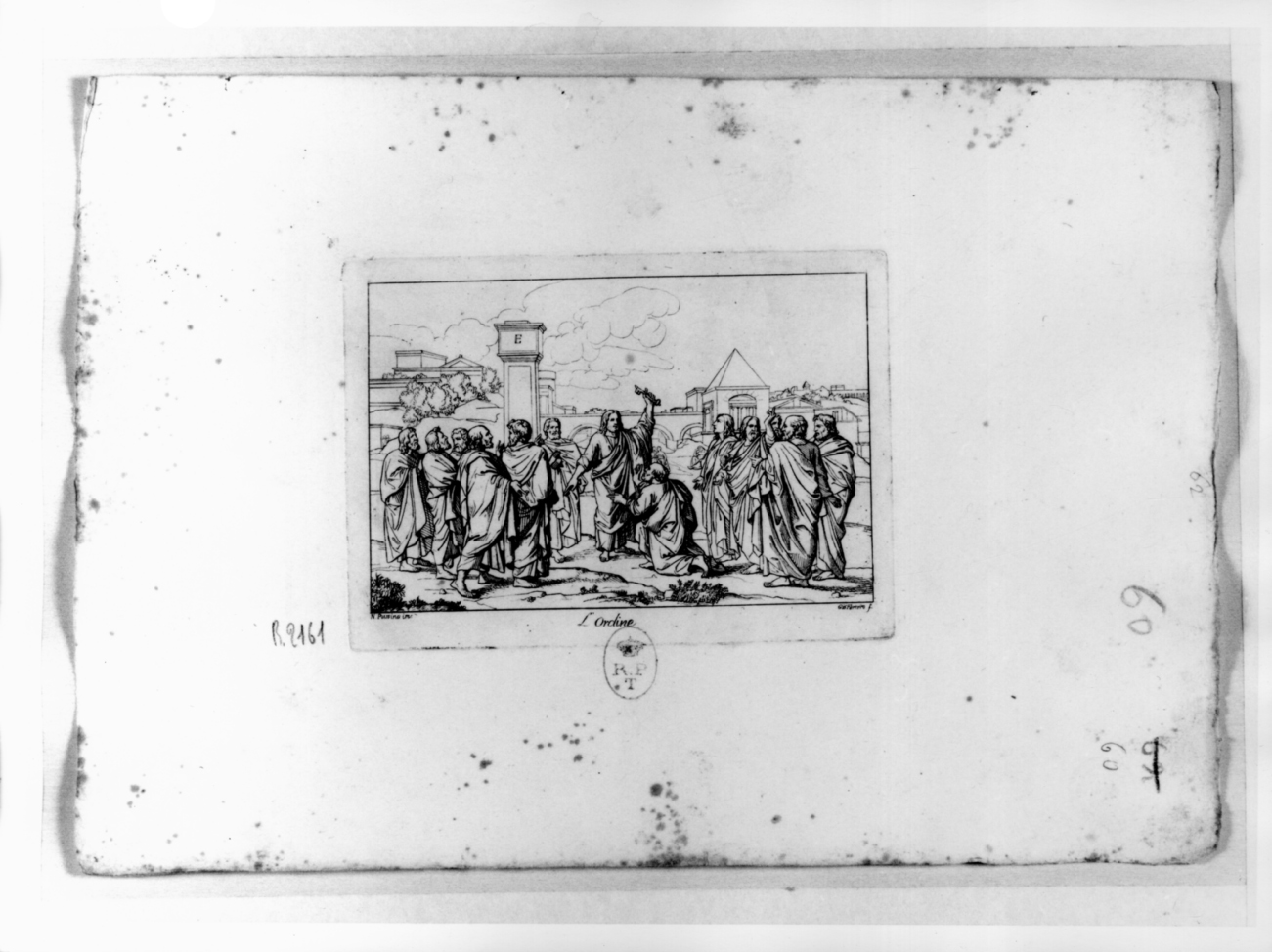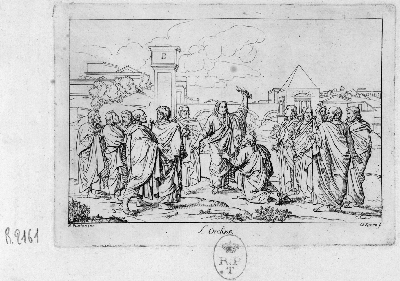 Attività umane: ordinazione. Personaggi: Cristo, San Pietro, apostoli. Veduta: città