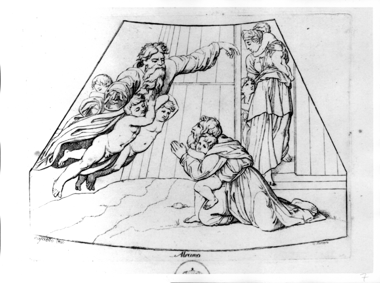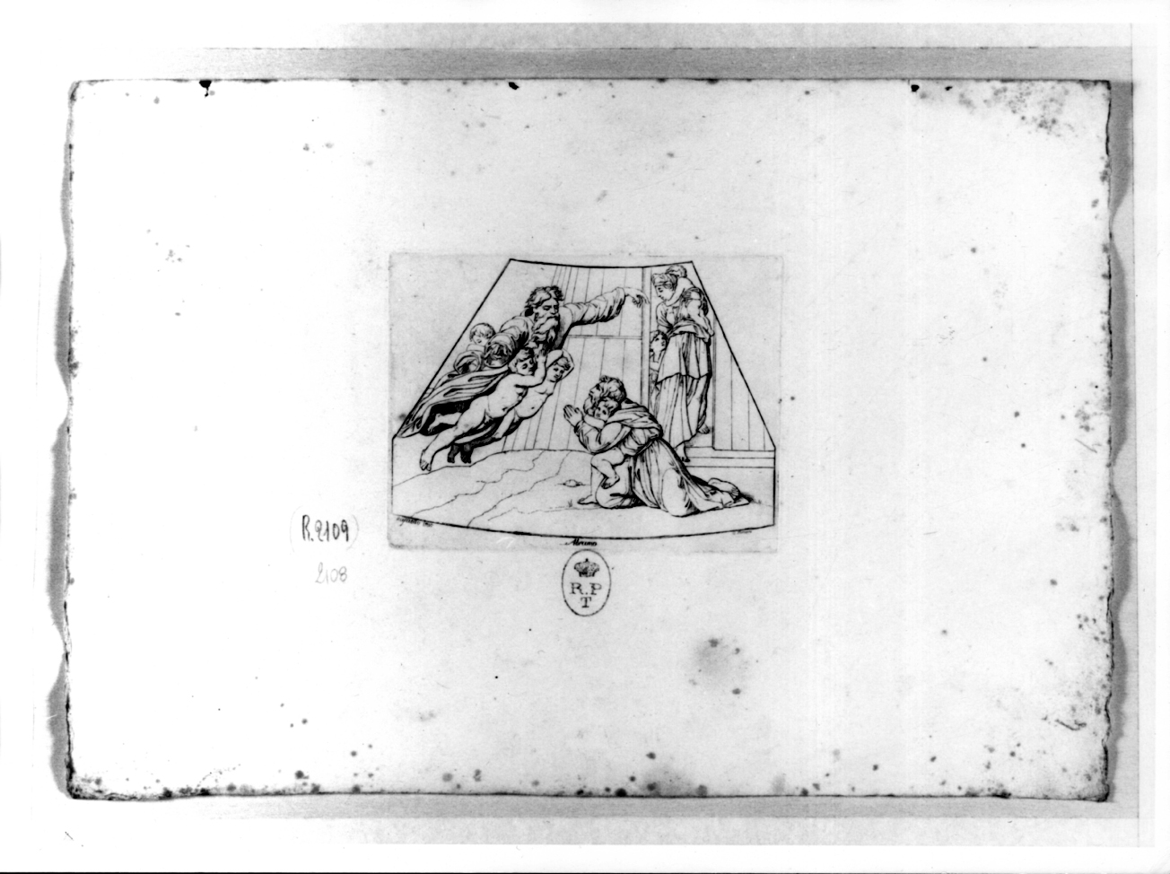 - ISCRIZIONI in basso a sinistra - Rafaello inv - Ferrero Giovanni Francesco - corsivo -