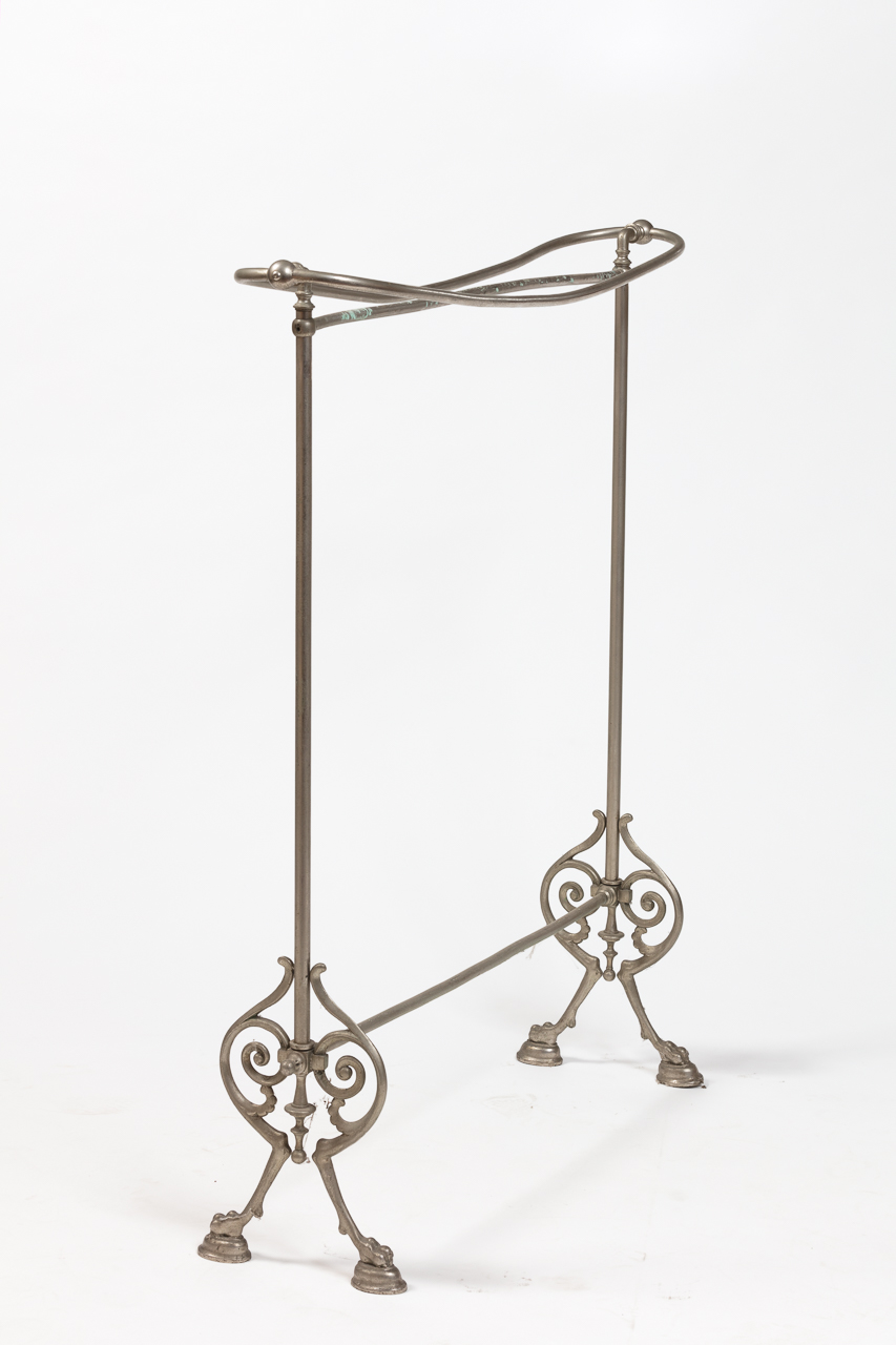 Porta asciugamani con doppia asta nella parte superiore ed una traversa in quella inferiore, poggiante su decorazioni a foggia di zampe di leone