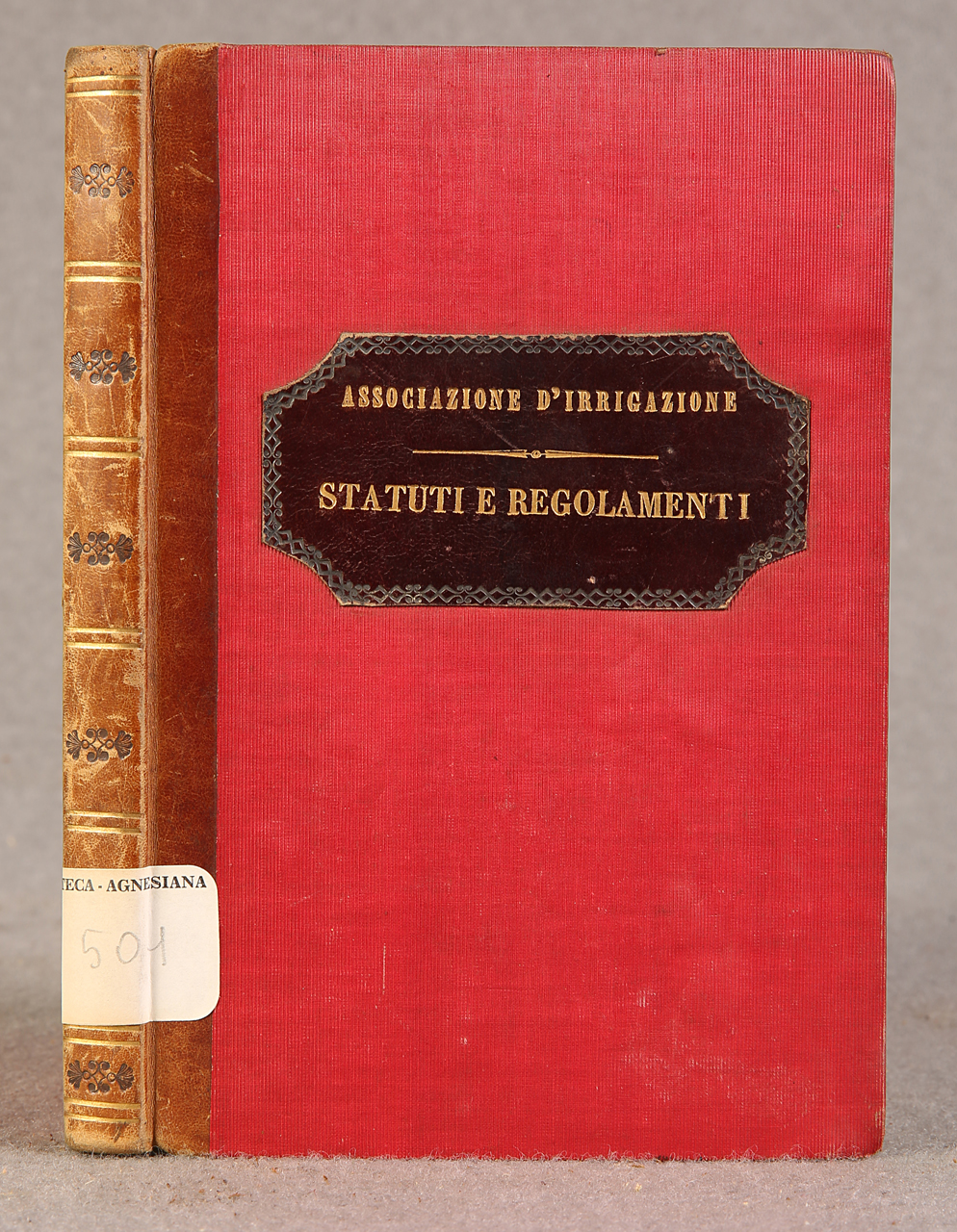 - NOTIZIE STORICO CRITICHE Titolo: Societa generale d' irrigazione, Capitolato d'affittamento delle acque demaniali derivanti dalla Dora Baltea necessarie all'irrigazione dell'Agro all'ovest della Sesia ad un'associazione generale dei proprietari dell'agro medesimo che possono usarne e statuti per la stessa associazione generale d'irrigazione secondo il progetto approvato dal Ministero delle finanze dello Stato sulle basi adottate dai consigli provinciale e divisionale di Vercelli. Vercelli, Degaudenzi, 1859