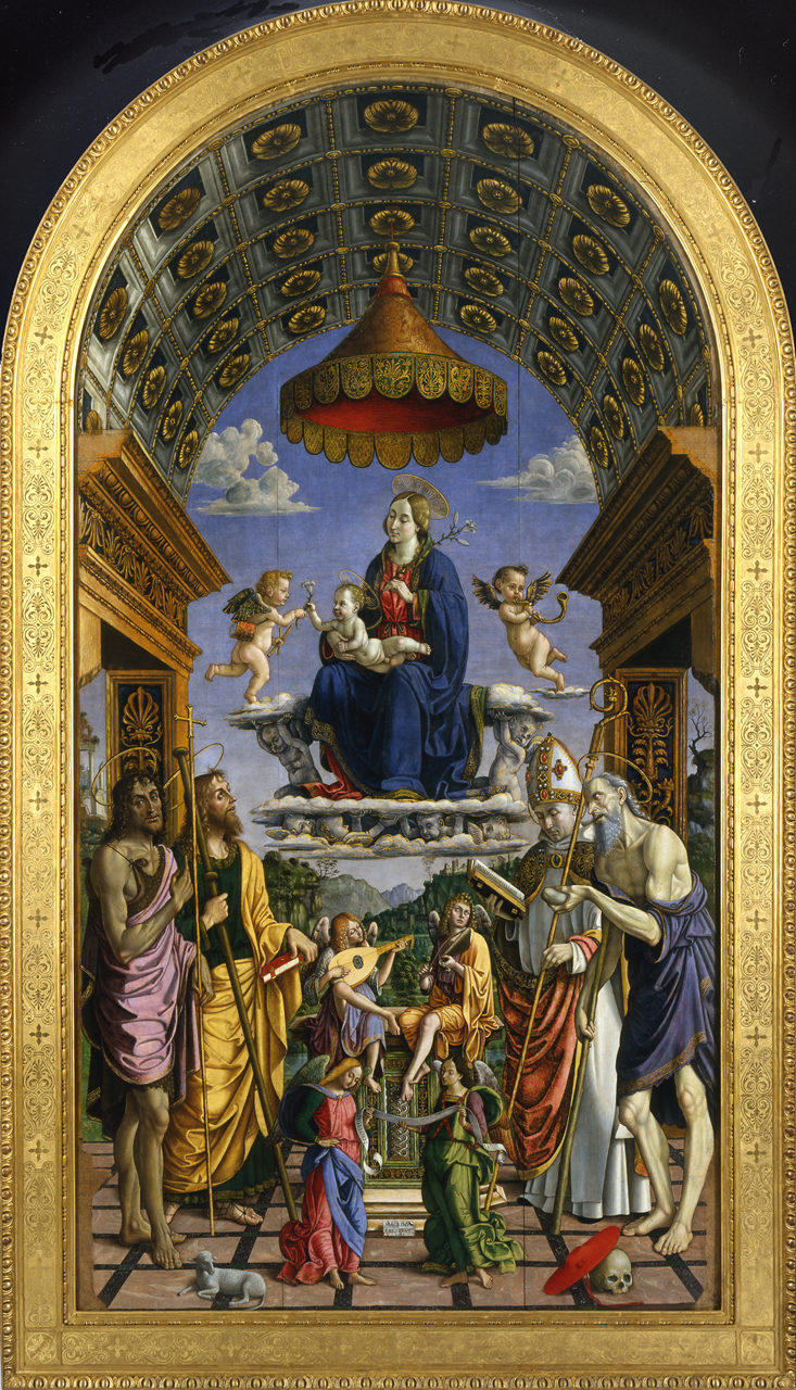 Madonna in trono con Bambino, San Giovanni Battista, San Giacomo il Maggiore, San Gerolamo, San Ugone e angeli