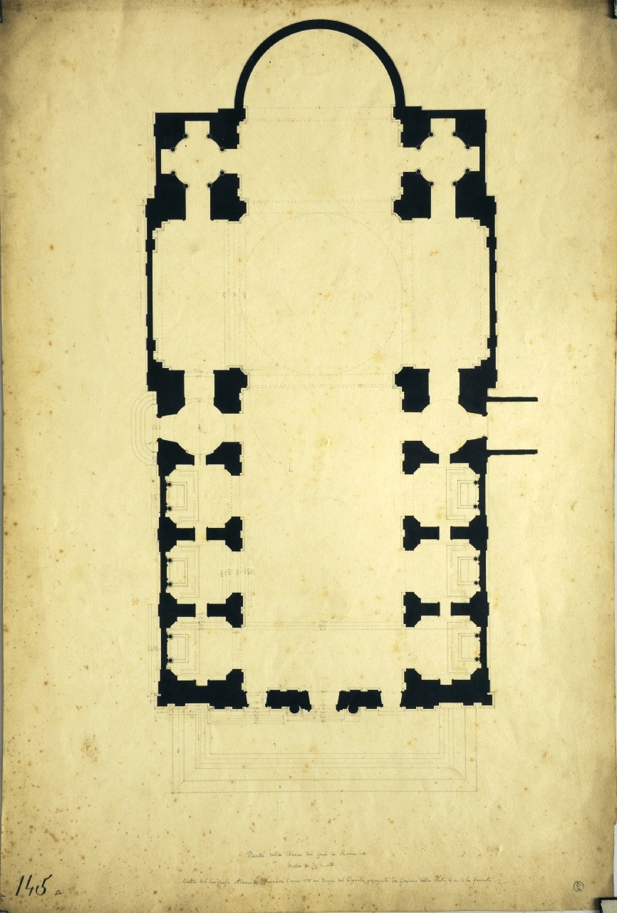 - ISCRIZIONI in basso al centro - Pianta della chiesa del Gesù in Roma - Promis Carlo - a penna -