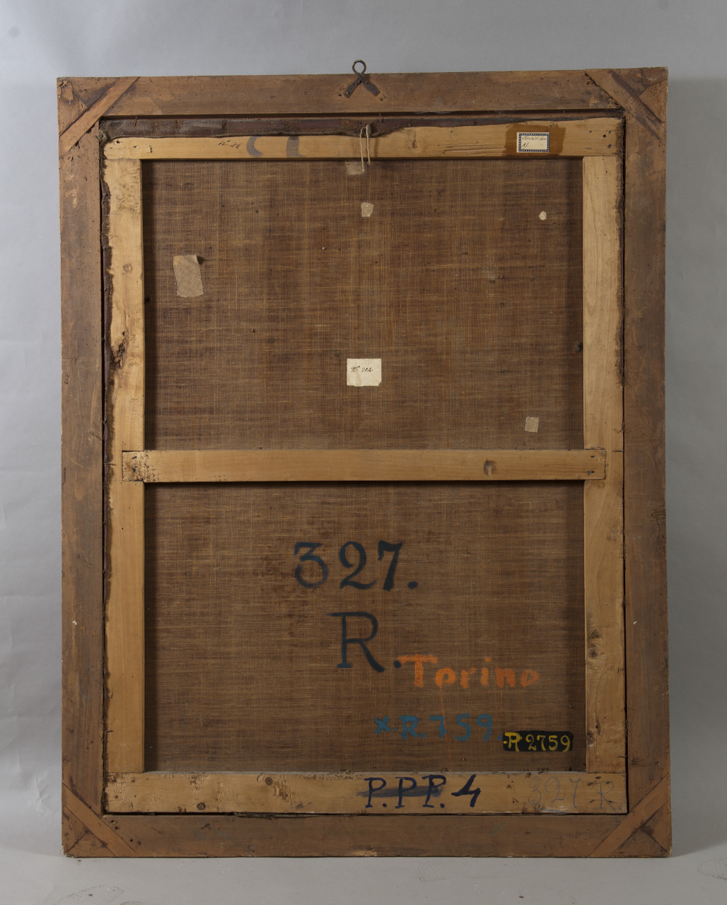 Dipinto ad olio su tela di formato rettangolare con cornice in legno intagliato e dorato. Felicita di Savoia è ritratta ritratta in età infantile, in piedi a figura intera, in abito grigio ricamato in azzurro. Tiene nella mano sinistra un canarino