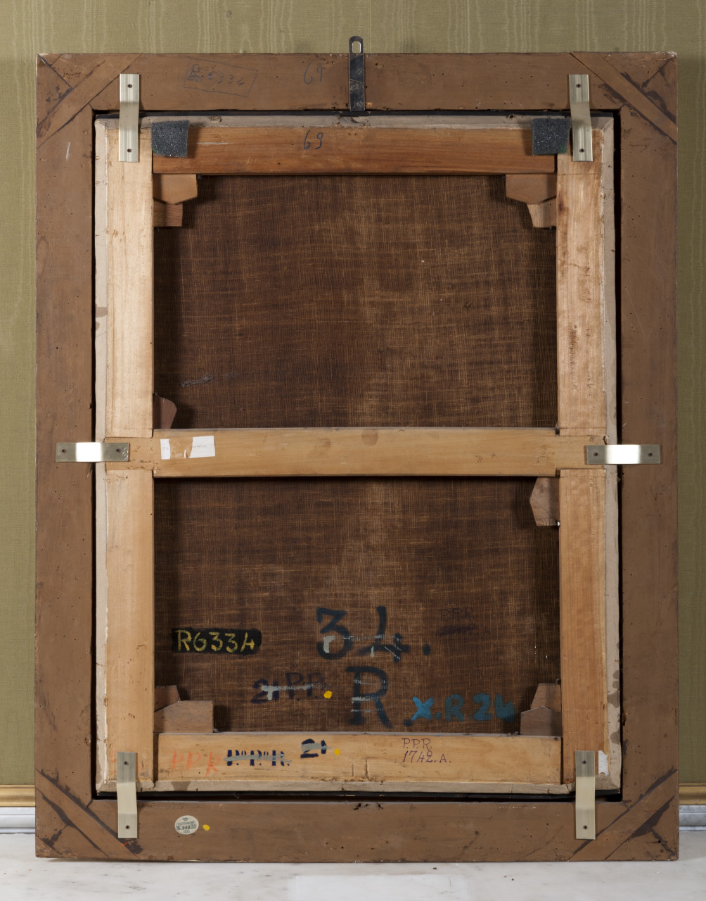 - ISCRIZIONI verso, tela, in basso, a sinistra - R 6334 (giallo) - maiuscolo/ numeri arabi - a impressione - italiano