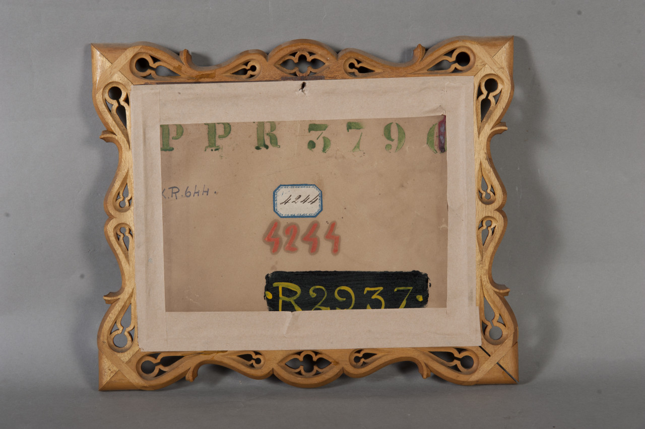 - NOTIZIE STORICO CRITICHE La stampa fa parte di una serie dal titolo “Galleria di quadri moderni di S.M. il Re Carlo Alberto, disegnata da Giuseppe Zino e incisa da valenti artisti coll’illustrazione dei quadri scritta da Tommaso Vallauri”, pubblicata a Torino da Giuseppe Pomba e Comp. Editori nel 1845. Della serie uscì, contrariamente al piano editoriale che prevedeva due volumi, solamente il primo con 26 riproduzioni. Esse riproponevano a un più vasto pubblico la serie di quadri di storia sabauda commissionati tra gli anni Trenta e l’inizio degli anni Quaranta a pittori principalmente piemontesi e lombardi dal re Carlo Alberto per rinnovare l’arredo del piano nobile del Palazzo Reale di Torino. Una seconda versione della raccolta, con sole 18 tavole, intitolata “Fasti della Reale Casa di Savoia e della monarchia” fu annunciata sulle pagine della “Gazzetta Piemontese” nel luglio del 1845. Autore della parte narrativa che accompagnava ciascuna incisione, in questa sede non conservata, fu il professore di eloquenza latina dell’Università di Torino Tommaso Vallauri (Chiusa Pesio, 1805-Torino, 1897). La traduzione delle opere pittoriche in disegno per l’incisione venne affidata al “egregio Zino, disegnatore di S.M.”, pittore di origine monferrina. Per l’esecuzione dei rami furono coinvolti sia professionisti piemontesi che celebri incisori francesi e britannici. La prima dispensa con due incisioni, acquistabili a prezzo variabile da 4 a 6 lire a seconda del formato e della carta, fu annunciata sulla “Biblioteca Italiana” nell’ottobre del 1845 e le successive uscirono con cadenza mensile. La serie di incisioni era accompagnata da un elegante frontespizio con le raffigurazioni del Po e della Dora, accompagnato dallo stemma sabaudo fregiato del collare dell’ordine dinastico dell’Annunziata, eseguito nel 1844 a Parigi presso la Chromolitographie Engelmann e Graf. La serie completa delle stampe conservata presso il Castello di Racconigi venne collocata in cornici di gusto eclettico, con richiami neogotici, appositamente realizzate per l’allestimento delle singole stampe in questo ambiente, destinato ad appartamento del sovrano, fissando ciascuna cornice alla tappezzeria con l’uso del filo. La tela riprodotta nella stampa fu realizzata nel 1843 dal pittore di corte Felice Maria Ferdinando Storelli. La scena rappresenta il momento in cui gli inviati presso la corte dell’imperatore Sigismondo di Lussemburgo mostrano al duca Ludovico di Savoia-Acaja il rescritto imperiale ottenuto a protezione dell’ateneo sabaudo insieme al vescovo di Torino. L’opera entrò quindi a far parte della decorazione della Sala del Caffè in Palazzo Reale a Torino. L’ambiente, allestito nello stesso 1844, includeva alle pareti una serie di dipinti di artisti contemporanei originari del Regno di Sardegna che avevano una forte omogeneità tematica. Si trattava, infatti, di episodi di storia sabauda attraverso i secoli, riscoperti dagli studi eruditi fioriti in Piemonte dagli anni Venti dell’Ottocento di rilievo maggiore o minore, ma che avevano con elemento comune di essere emblematici esempi di fedeltà alla dinastia regnante. L’ambiente venne smantellato a fine Ottocento e i dipinti inviati in altre sedi di pertinenza sabauda, in particolare furono impiegati per l’allestimento degli appartamenti destinati ai sovrani nel palazzo attiguo alla basilica di Superga, ove pervennero nel 1898. L’opera si conserva ancora in questa sede. DESO:La stampa è collocata entro una cornice in legno intagliato e verniciato dal profilo mistilineo e luce rettangolare munita di vetro e di cartoncino sul verso. Tipologia a gola; battuta liscia; fascia modanata. Esternamente a quest’ultima si sviluppa un motivo a traforo costituito da elementi a voluta affrontati che si dipartono, in corrispondenza dei lati maggiori da un elemento ovale con specchiatura polilobata all’interno. In corrispondenza degli angoli ornato a foglie con bacca centrale
