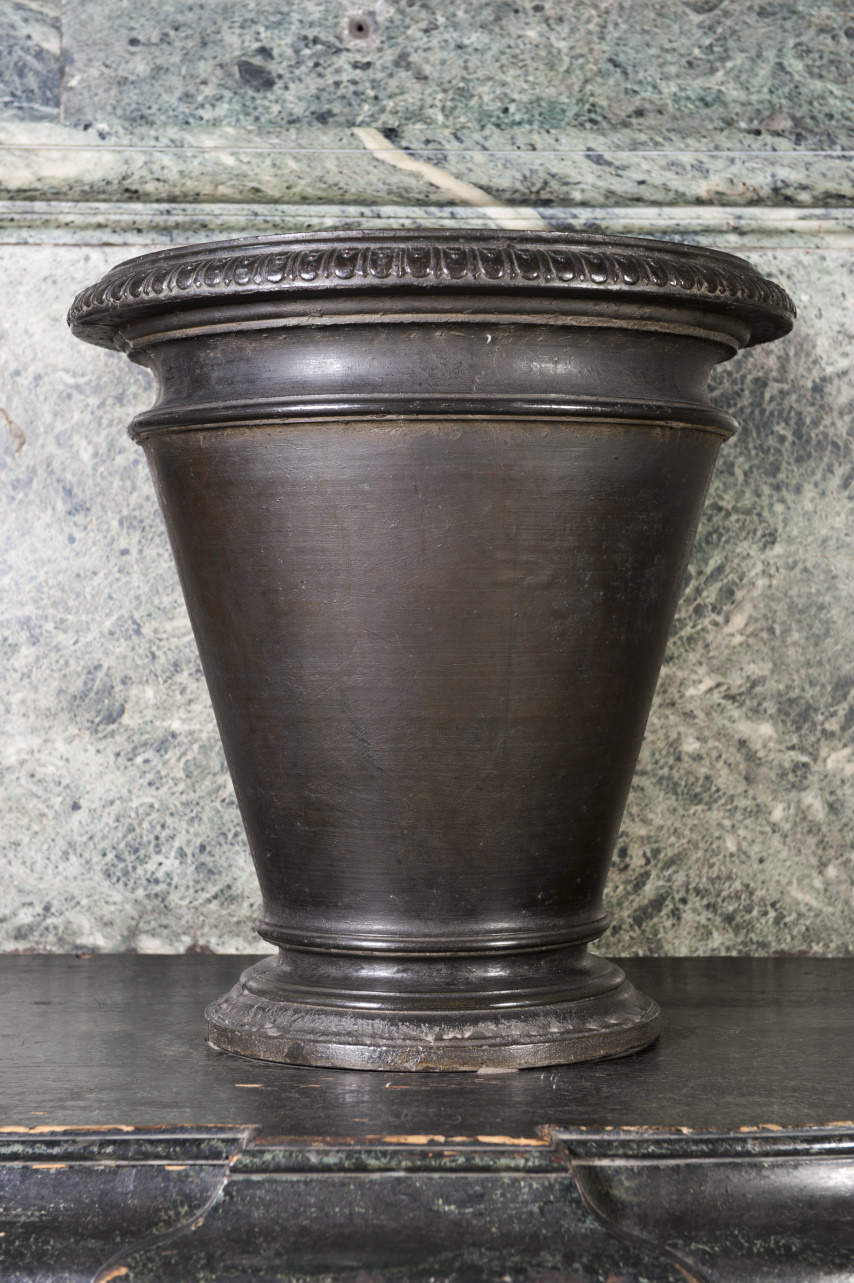 Vaso a mortaio in bronzo, di medie dimensioni, forma troncoconica, con base liscia e bocca ornata con decorazione a ovoli e dardi