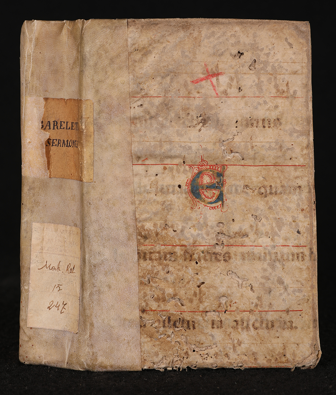 legatura rigida in pergamena di riuso su supporto in cartone. Pergamena di manoscritto musicale. Dorso rinforzato in pergamena. Tagli grezzi. Note manoscritte sui contropiatti; nota di possesso sul frontespizio