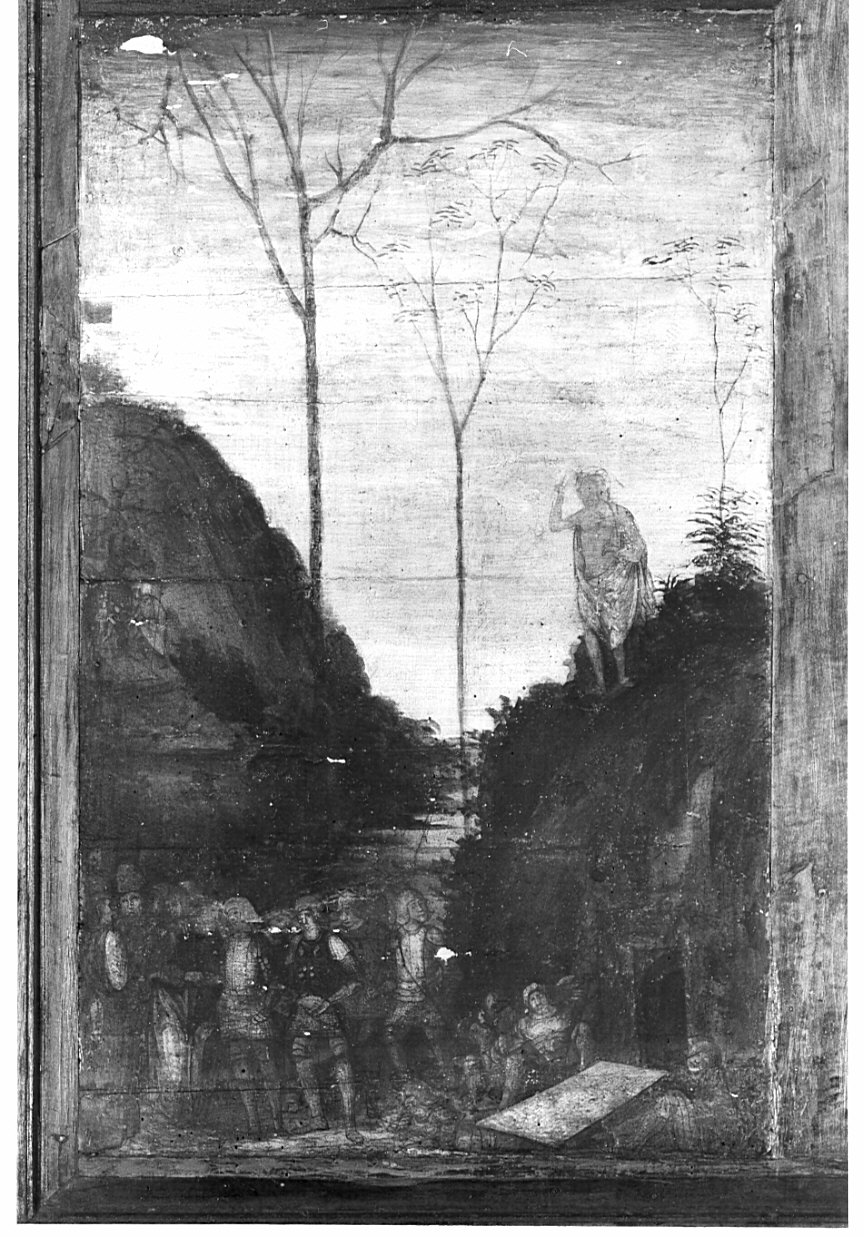 - NOTIZIE STORICO CRITICHE Attribuito a Bramantino e secondo la Tea, vicini ai miniatori di Crescenzago, dal Gruner sono riferiti a Bernardino Luini.Costituiscono la parte superiore degli armadi per reliquie e paramenti, secondo la Tea, l'esempio più antico di armadi per reliquie e paramenti destinati ad accogliere i preziosi arredi donati da Lodovico il Moro con atto del 4 dicembre 1497 iniziati per essere collocati nella sagrestia, voluta dallo stesso Lodovico verso il 1497, "...quelli, quali sono posti alla parte orientale furono fatti con denari recati da Monsig. Ill.mo Steffano Vescovo di Parigi, e quelli che sono nella parte occidentale furono fatti " con denari d'industria del Padre F.Vincenzo Spanzotto... "; il Gattico aggiunge anche che quelli di destra sono compiuti nel 1503, cioè dopo la caduta del Moro. Stilisticamente rinascimentali, secondo la Tea rivelano un'impostazione legata al gusto toscano, anche se richiamano il coro di Santa Maria della Passione di Milano