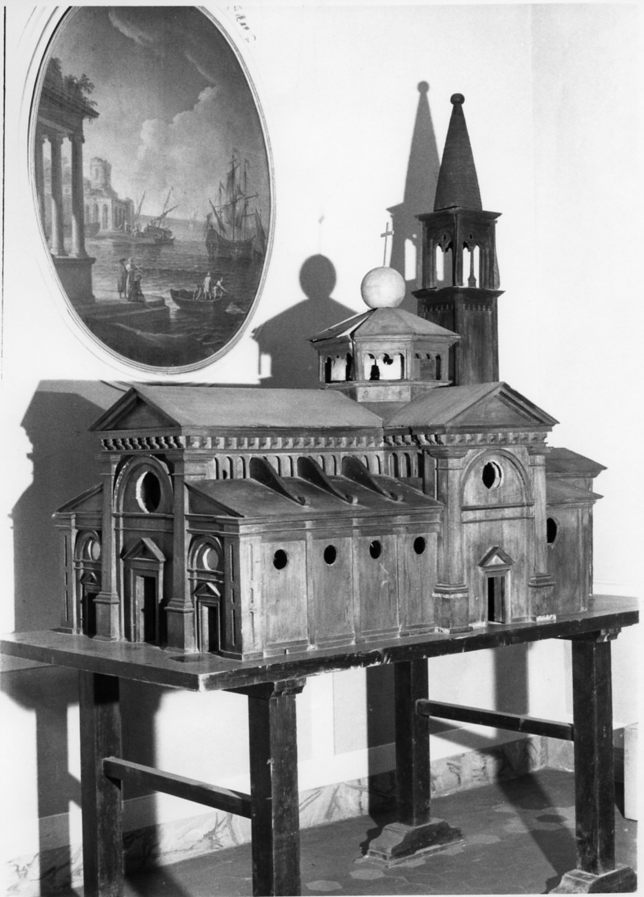 - NOTIZIE STORICO CRITICHE Il medello ligneo della cattedrale di Vigevano fu probabilmente realizzao da una bottega lombarda su disegno di Antonio da Lonate, l'architetto a cui Francesco II Sforza commissionò la costruzione dell'edificio nel 1532. Il modello presenta elementi architettonici di chiara derivazione bramantesca. Per qualche notizia, si veda: L. Barni "La cattedrale e le primitive chiese di Vigevano", Vigevano 1919, p. 36, fig. 6; F. Pezza "Vigevano", in "Le cento città d'Italia illustrate", n. 217, Milano 1928, p. 12; F. Pianzola " Il Santambrogio di Vigevano", in "Ticinum", 1939-40, p. 34; E. Aschieri " Rilievo dei monumenti. Il modello ligneo del Duomo di Vigevano", in "Palladio", 1939; S. Molinari "Il Duomo e il suo Tesoro. Storia della città di Vigevano", Vigevano 1972, p. 153; S. Molinari "Vigevano. Il Duomo e il suo Tesoro", Vigevano 1979, p. 4