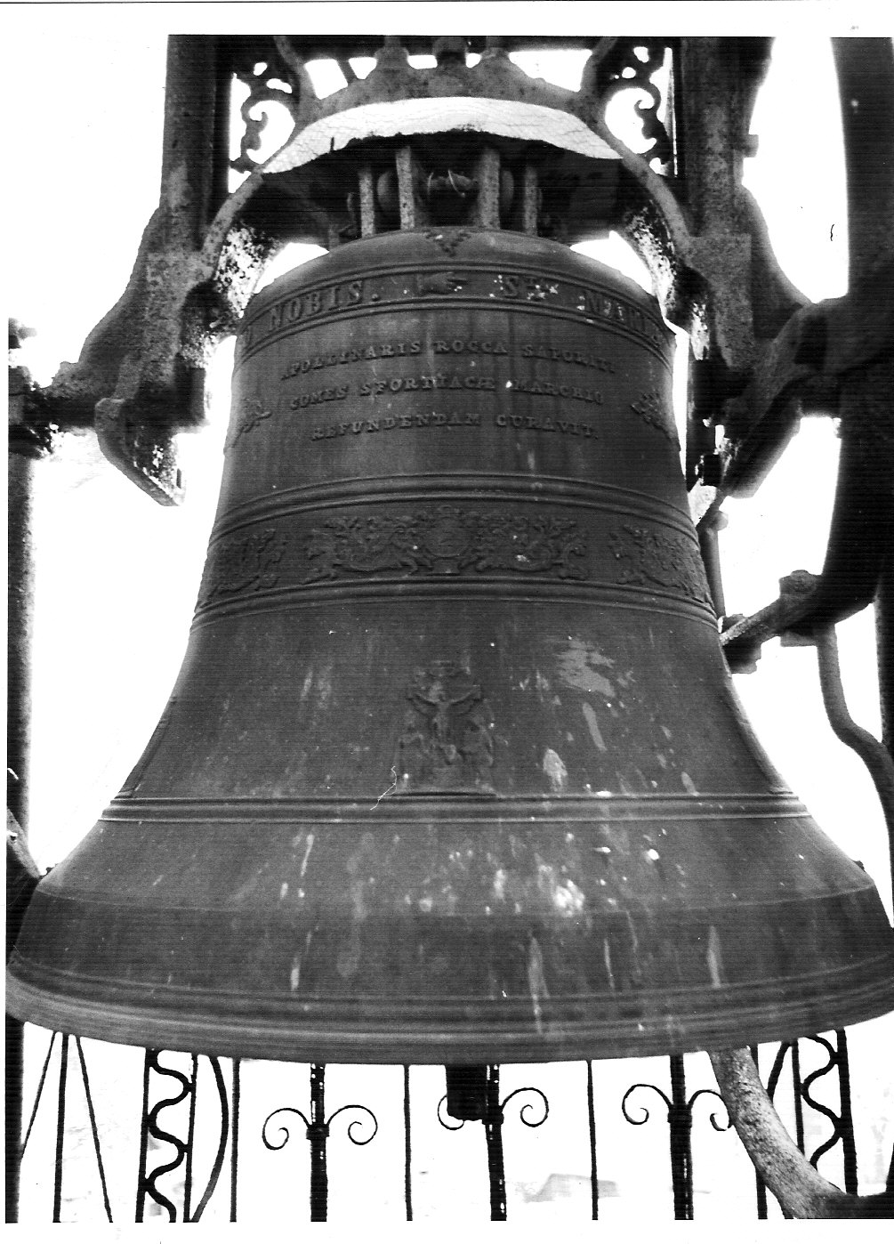 - ISCRIZIONI campana più grande - APOLLINARIS ROCCA SAPORITI/ COMES SFORTICAE MARCHIO REFUNDENDAM CURAVIT // FRATELLI BARIGOZZI/ PIU' VOLTE PREMIATA/ MILANO 1875 - lettere capitali -
