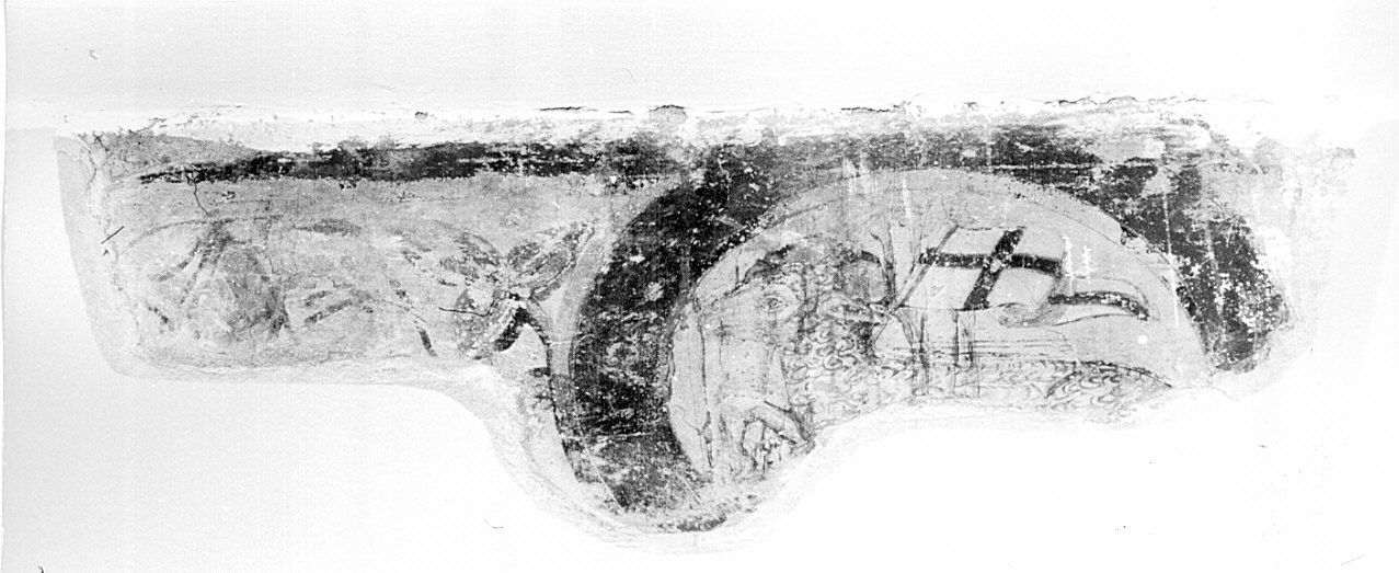 Affresco con tondo rosso su sfondo verde raffigurante agnello con vessillo crociato