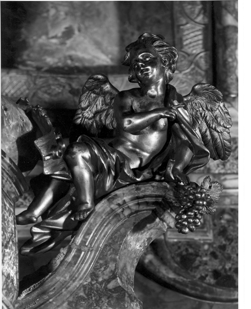 Angioletto in bronzo dorato che tiene in mano un grappolo d'uva
