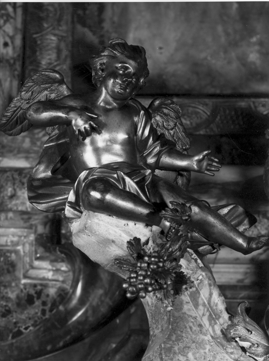 Angioletto in bronzo dorato con un grappolo d'uva