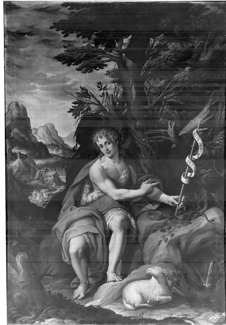 Personaggi: S. Giovanni. Paesaggi: bosco. Animali: agnello. Oggetti: vessillo