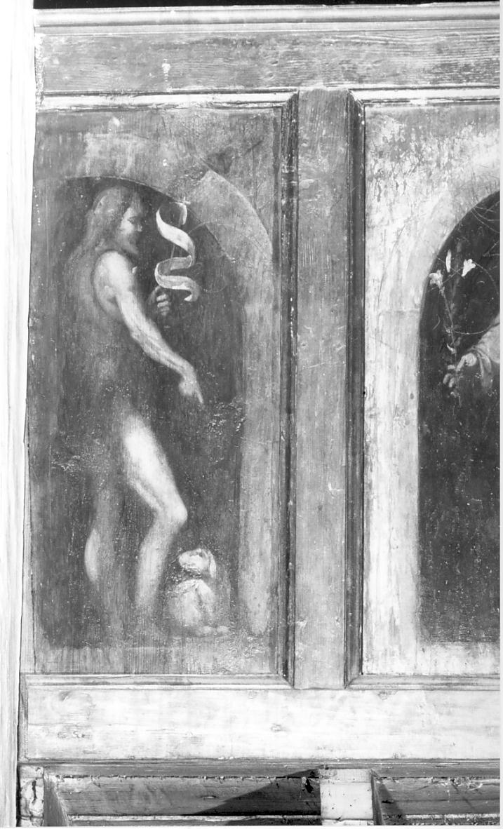 - NOTIZIE STORICO CRITICHE La tavola è stata dipinta nel 1526. I documenti pubblicati dal Besutti (1915, pp. 49-51; 80-81) permettono di datare l'importante ciclo del Romanino: l'1 dicembre 1524 viene stipulato il contratto per la decorazione delle ante dell'organo, che vengono consegnate ad Asola il 28 luglio 1525; il 5 giugno 1526 un nuovo contratto impegna il pittore per il compimento dell'opera; il 27 ottobre dello stesso anno l'intero ciclo pittorico viene collaudato ed è quindi da ritenersi terminato. Non sembra individuabile un tema iconografico generale (alcuni santi compaiono due volte), anche se risulta prevalere il tema delle profezie e delle prefigurazioni dell'Avvento di Cristo. L'opera di Asola viene solitamente vista come un importante paesaggio dal primo momento, ispirato ai grandi veneti contemporanei ed arricchito dalla conoscenza dei cremonesi e del Pordenone, alla fase più tipica e schietta vena "popolaresca" del maestro bresciano