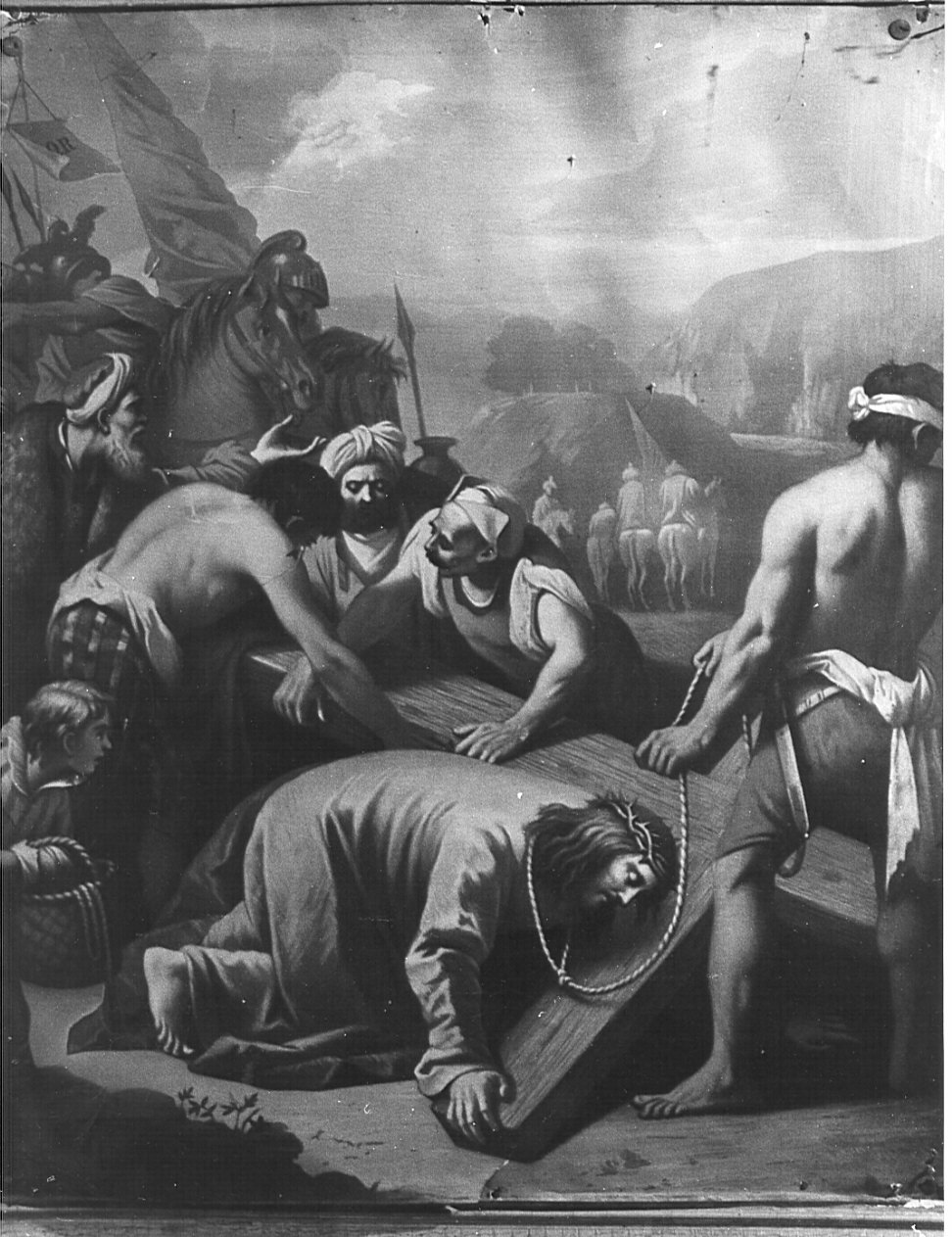 - ISCRIZIONI su un cartiglio della cornice - IX/ GESU' CADE LA TERZA VOLTA SOTTO LA CROCE - lettere capitali -