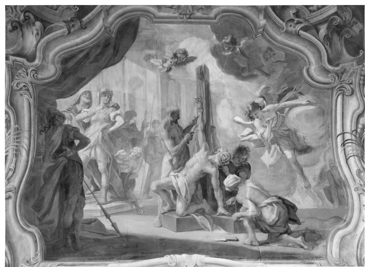 Personaggi: S. Bartolomeo. Figure: angeli; sgherri; soldato. Oggetti: palo