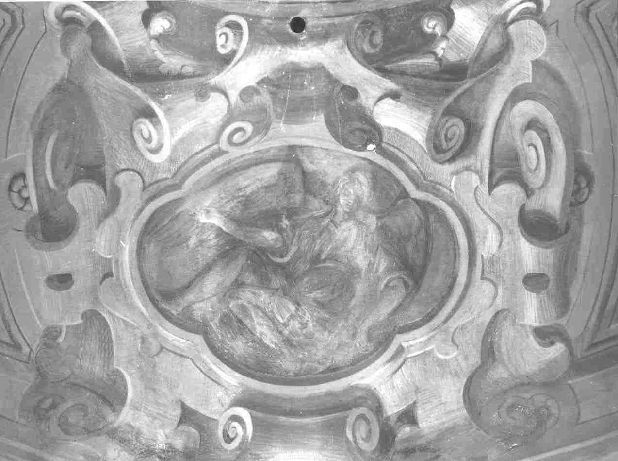 - NOTIZIE STORICO CRITICHE L'angelo è mediocre, la cartouche, invece è buon lavoro. Il dipinto deve essere stato eseguito verso il 1634, data in cui il Bruni e l'Amigoni eseguono gli affreschi sottostanti. Per gli affreschi della volta attribuibili al Gandino si vedano le schede NCTN 03/00045769- 03/00045670- 03/00045671