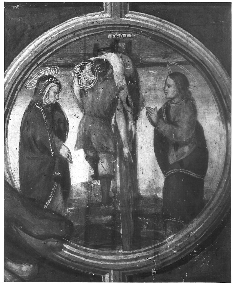 - NOTIZIE STORICO CRITICHE Il dipinto non è menzionato nella letteratura artistica del sei e settecento relativa alla chiesa. La prima citazione risale infatti al Casati (p.106). E' possibile quindi che l'ubicazione non sia originaria. Il Casati menzionando il dipinto, afferma essere attribuito al Barroccio, pur ritenendolo eseguito nel 1444, male interpretando così la data in basso a destra sulla tavola. Lo stesso autore riferisce che si tratta di un dono della contessa Taverna, senza ulteriori specificazioni. Nella scheda compilata nel 1943 dalla Gengaro, anche la studiosa data il dipinto al 1444. Nessun documento relativo alla tavola è stato ritrovato negli archivi. L'analisi stilistica permette di considerarla eseguita da un artista lombardo della metà del cinquecento