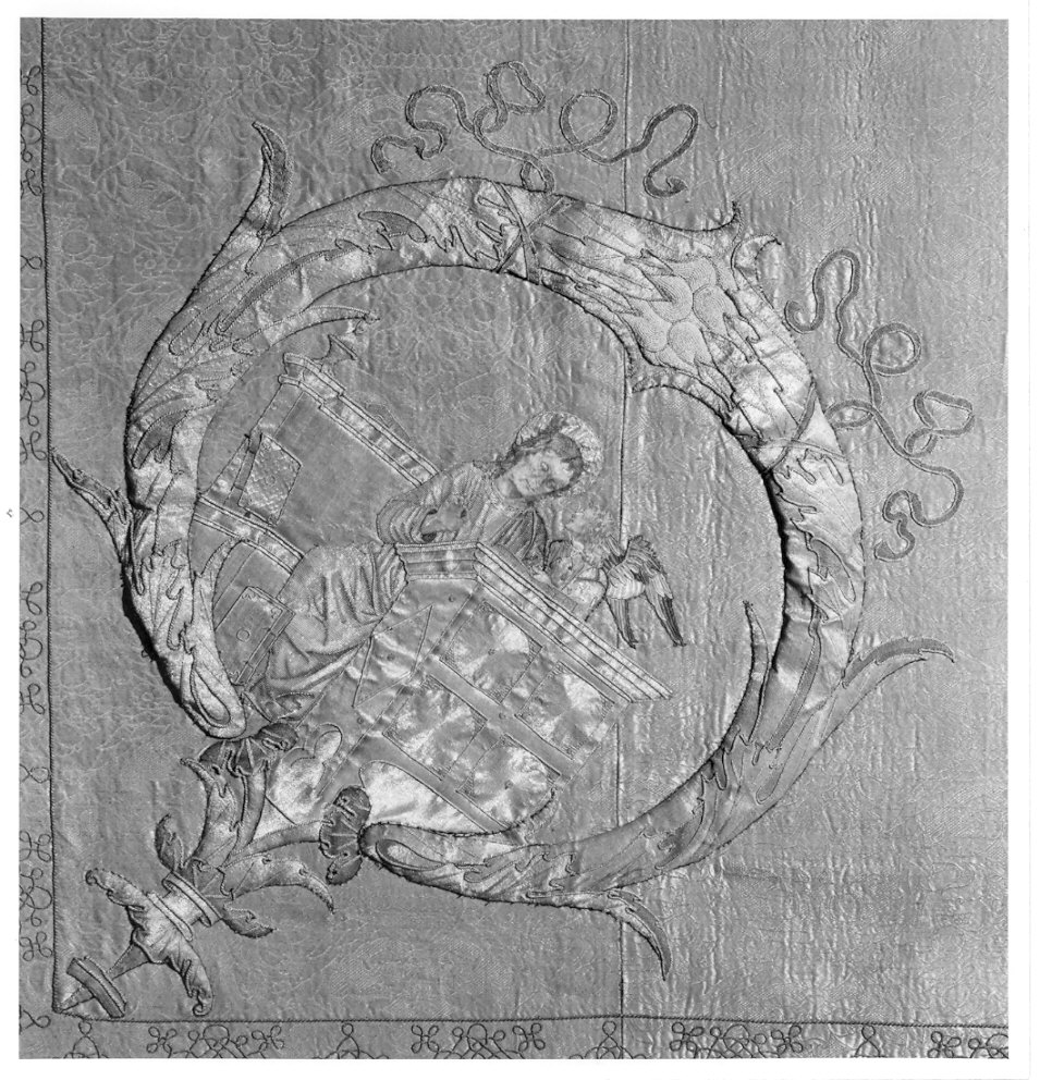 - NOTIZIE STORICO CRITICHE Il capocielo, completato da quattro mantovane frangiate dello stesso tessuto e decorata ciascuna da un busto di San Bassiano e due stemmi del vescovo Carlo Pallavicino (cfr. scheda 03/00048183), costituisce il baldacchino che il prelato donò alla cattedrale, con altri preziosi oggetti, per la processione del Corpus Domini il 13 giugno 1495. Così è descritto nell'atto di donazione: "Baldachino uno de brochato doro folio cremesino cum uno agnus dei de perle cu uno festomo intorno doro de zechino de perle cu li quatro Evangelisti cu li soy festoni intorno doro fioriti de perle cu li soy ligati intorno de groppi a la morescha..." (atto di donazione del vescovo Carlo Pallavicino, 13 giugno 1495, ms. dell'Archivio Capitolare di Lodi). Il canonico Sacco, nell'orazione di ringraziamento (trascritta nel 1888: C. Sacco "Orazione in occasione della costituzione del Tesoro", in "Archivio Storico Lodigiano", 1888, pp. 141-142), per primo ne lodò la squisita fattura. Gli autori successivi di guide ipotizzarono per il capocielo una fattura fiamminga, smentita dagli studiosi moderni (F. Malaguzzi Valeri "La corte di Ludovico il Moro", 1913, I, p. 158). Per le vicende in seguito alle quali il tessuto tornò in possesso della cattedrale (9 luglio 1869) dopo la dispersione del Tesoro in epoca napoleonica e il periodo di possesso da parte del Comune, si veda G. Agnelli (1895; "La cattedrale di Lodi...", in "Archivio Storico Lodigiano", 1895, pp. 162-164). Bibliografia: "Cronichetta di Lodi del sec. XV", edita da C. Casati, 1884; G. Gabiano "Laudiade", Milano 1586, libro II; G.A. Porro "Storia diocesana", ms. sec. XVII, in "Archivio Storico Lodigiano", 1896, p. 166; D. Lodi "Chiese della città...", in "Archivio Storico Lodigiano", 1892, p. 95 e segg.; P. Manzini "C. Pallavicino vescovo di Lodi", in "Archivio Storico Lodigiano", 1918, p. 28; G. Baroni "San Bassiano nella storia...", in "Archivio Storico Lodigiano", 1938, pp. 68-69, 205-207