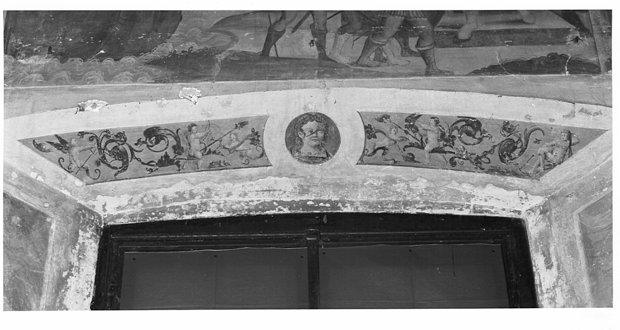 - NOTIZIE STORICO CRITICHE Come gli altri affreschi nel castello, sono opera di una unica scuola lombarda, qui attiva fra il 1544 c. e il 1555 c. (03/00050492). E' qui ripetuto lo schema distributivo comune agli affreschi nel castello, a riquadri dipinti alternati a una decorazione architettonica, secondo gli stilemi di una disposizione ornamentale alquanto diffusa in Lombardia lungo il XVI secolo. Nella serie delle 4 virtù alcune fonti di ispirazione sono individuabili nella (?),che ripete un motivo iconografico alquanto diffuso, esperibile anche nell'incisione attribuita a M. A. Raimondi raffigurante la Speranza (vedi S. Ferrara,1975)