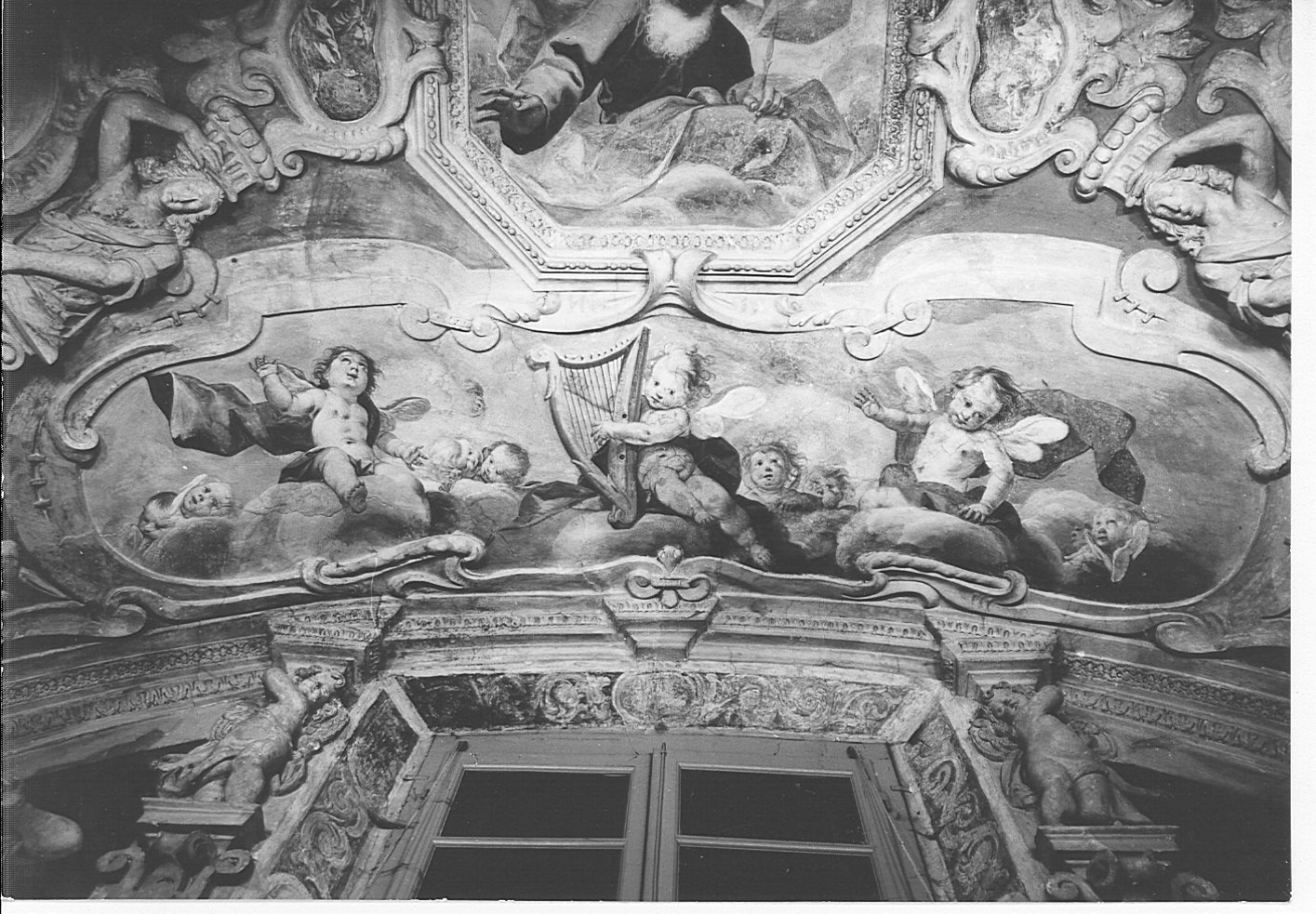 Parete di sinistra: Strage degli Innocenti; nella lunetta: visita della Vergine a S. Elisabetta, angioletti; parete di fondo: la Fuga in Egitto, il sogno di Giuseppe, la chiamata dei pastori; lunette: due Sibille; parete di destra: adorazione dei pastori; lunetta: presentazione al tempio, due angioletti; volta: Eterno Padre, angeli