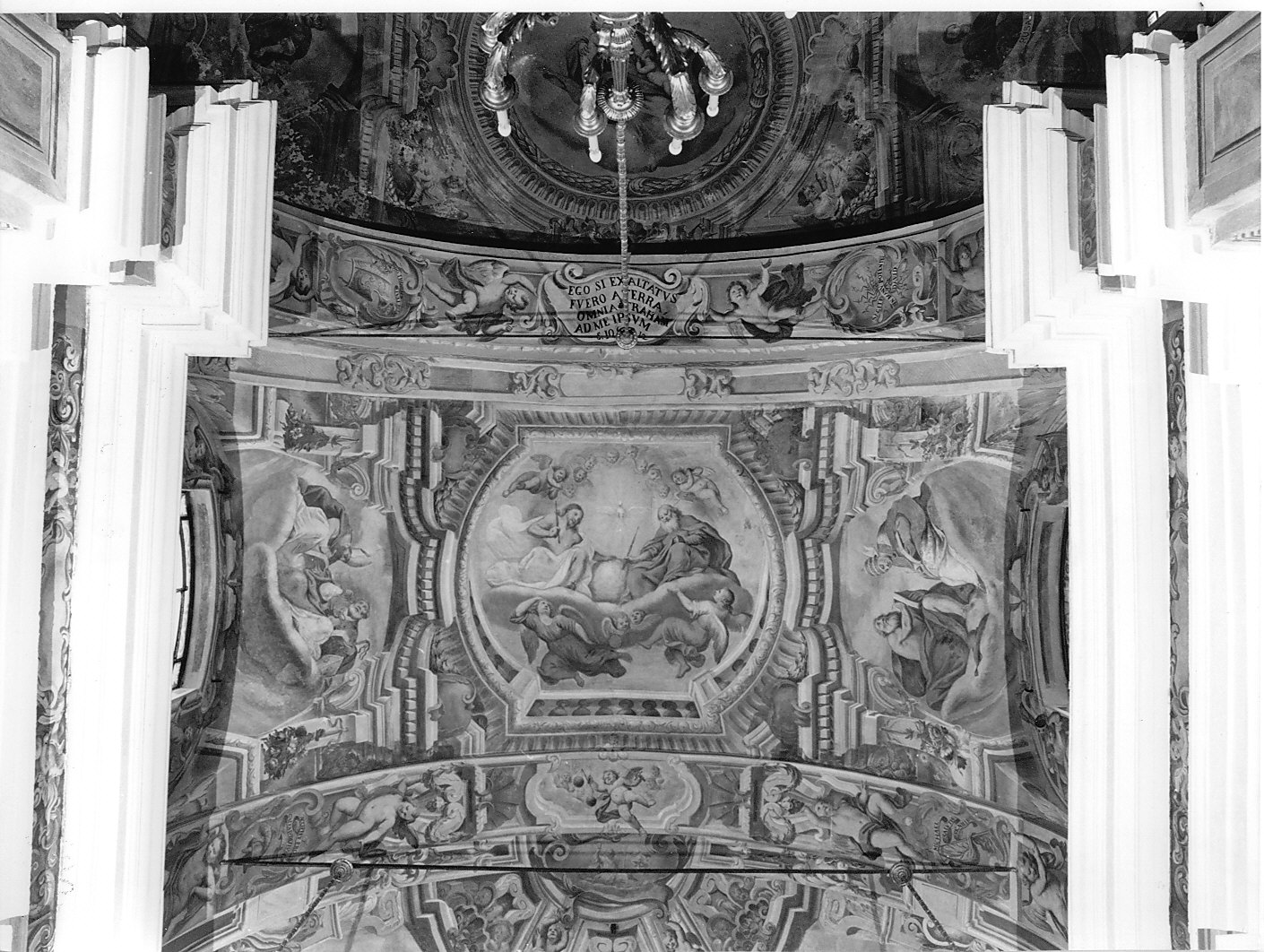 Personaggi: Cristo; Dio Padre; S. Gerolmo; S. Gregorio Magno; S. Ambrogio; S. Agostino. Simboli: (Spirito Santo) colomba