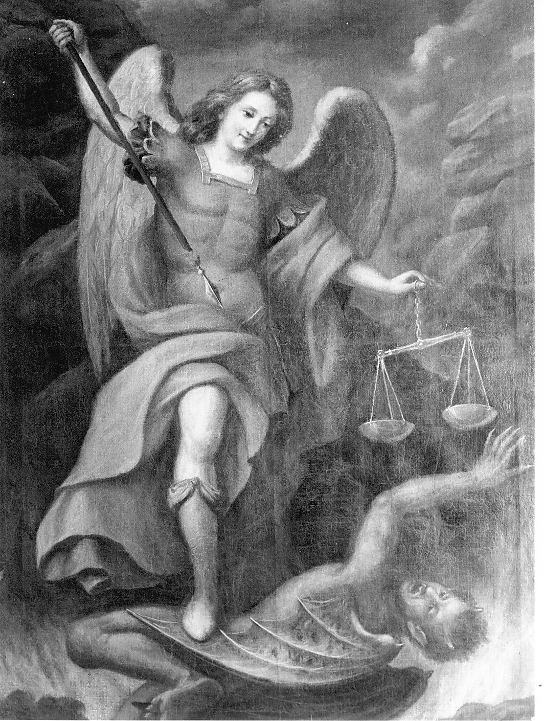 Personaggi: S. Michele. Figure: demonio. Oggetti: bilancia. Armi: lancia