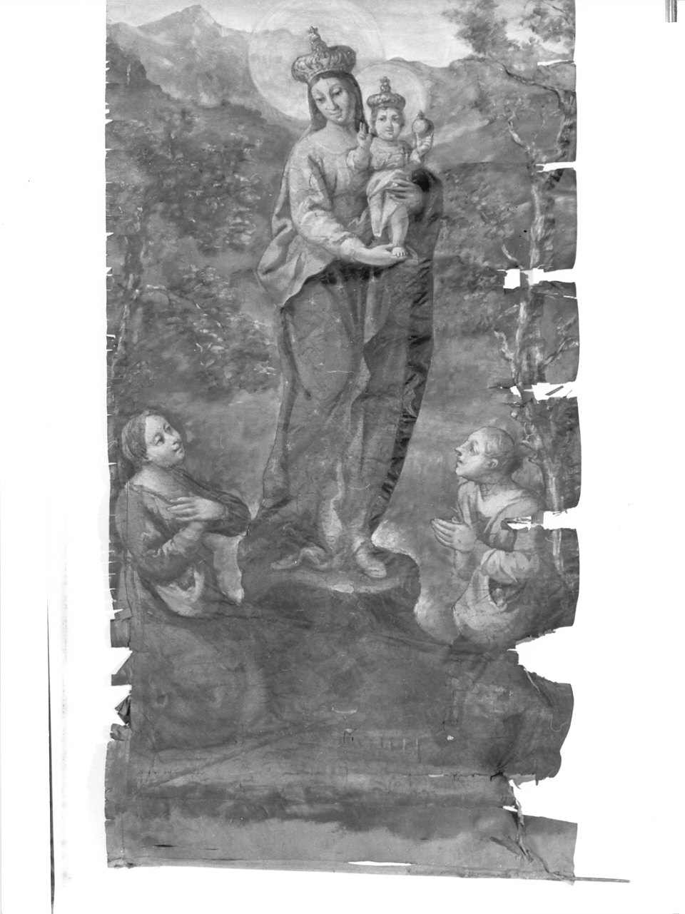 Divinità: Gesù Bambino. Personaggi: Madonna. Figure: due giovani alle quali apparve la Madonna a Gallivaggio