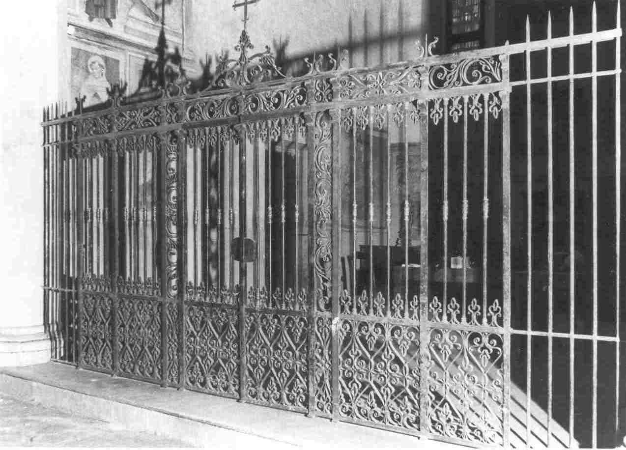 Lunga cancellata che chiude l'ultima cappella della navata destra, adibita a sacrestia da tempo immemorabile. La fascia superiore e quella inferiore della cancellata sono ricchissime di ornati a volutelle e fogliette stilizzate. Le aste di ferro, verso la metà della loro lunghezza, sono decorate da bossoli di ottone torniti