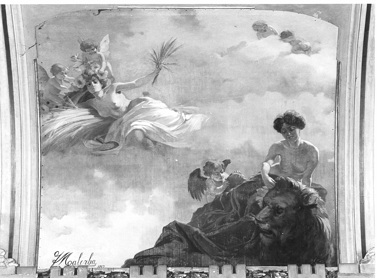 - NOTIZIE STORICO CRITICHE Gli affreschi della volta, datati e firmati, erano compiuti interamente al momento dell'inaugurazione (luglio 1907). In queste opere il milanese Francesco Malerba si rivela pittore di gusto ancora tradizionale, come scrive la Bossaglia, che però indica come autore più noto Emilio Malerba (Milano 1880-1926)