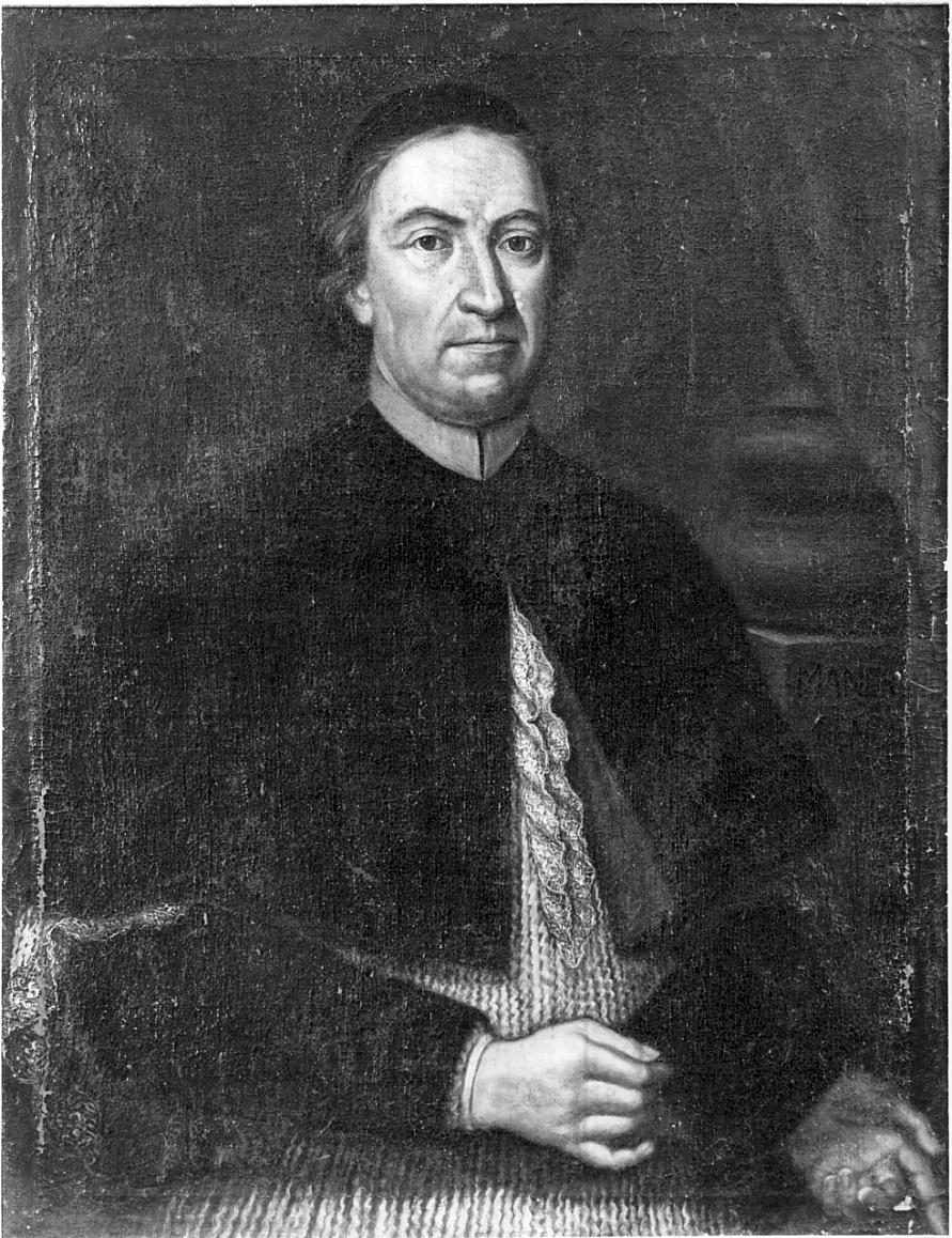 Ritratto a mezzo busto di religioso con cotta e mozzetta; nella sinistra un tricorno