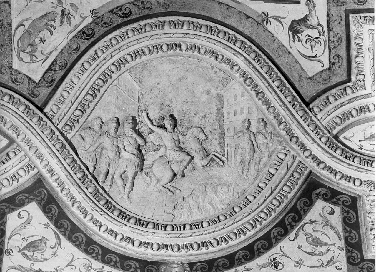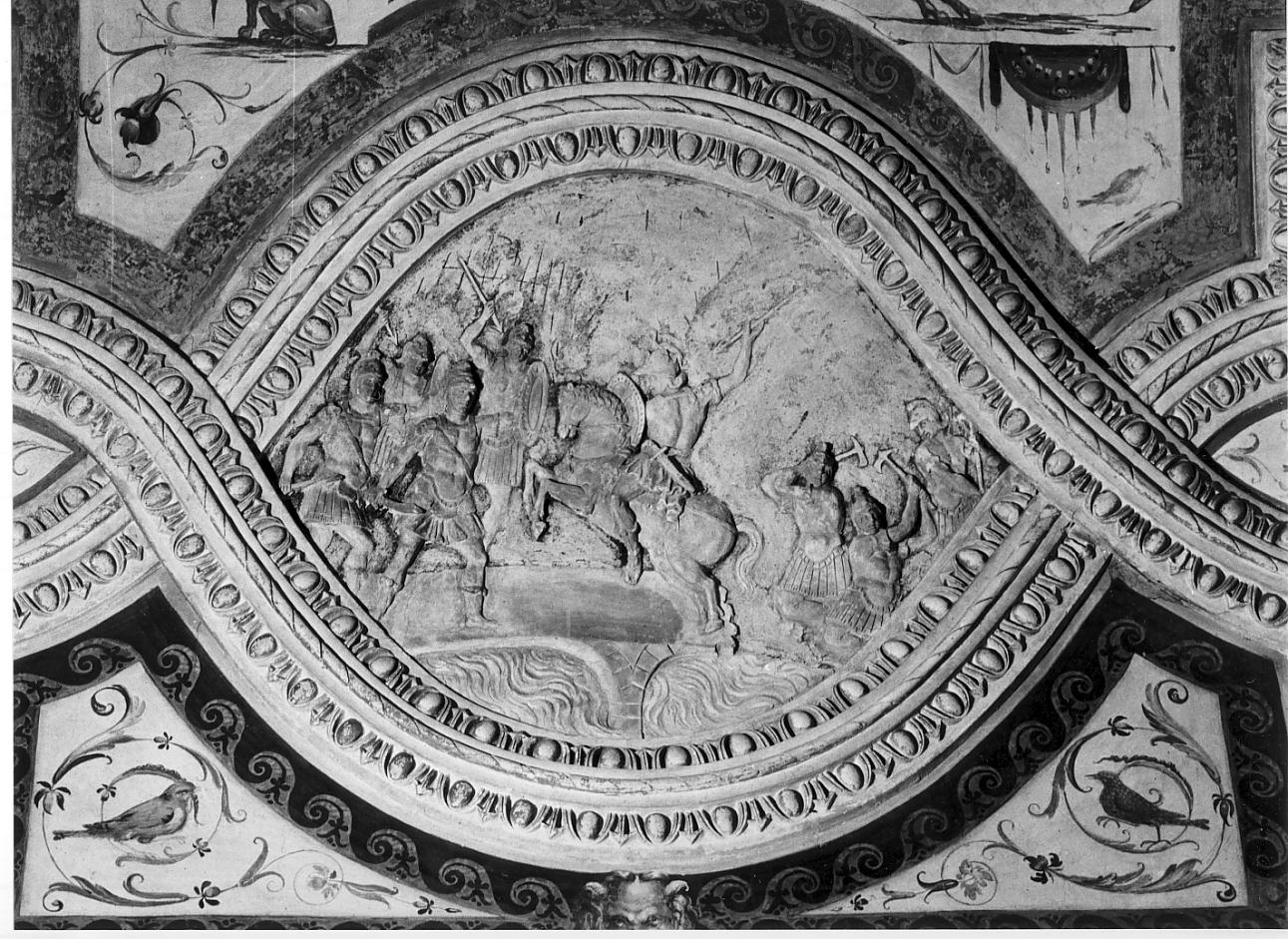 - NOTIZIE STORICO CRITICHE La presenza di questi rilievi nella decorazione del soffitto della sala testimonia l'amore di Vespasiano per l'arte e la cultura classica. Tradizionalmente la decorazione della sala è attribuita ad Alberto Cavalli. Tuttavia mancano elementi di raffronto con la sola opera sicura del Cavalli: la decorazione ad affresco della casa MAzzanti a Verona, firmata e datata 1530