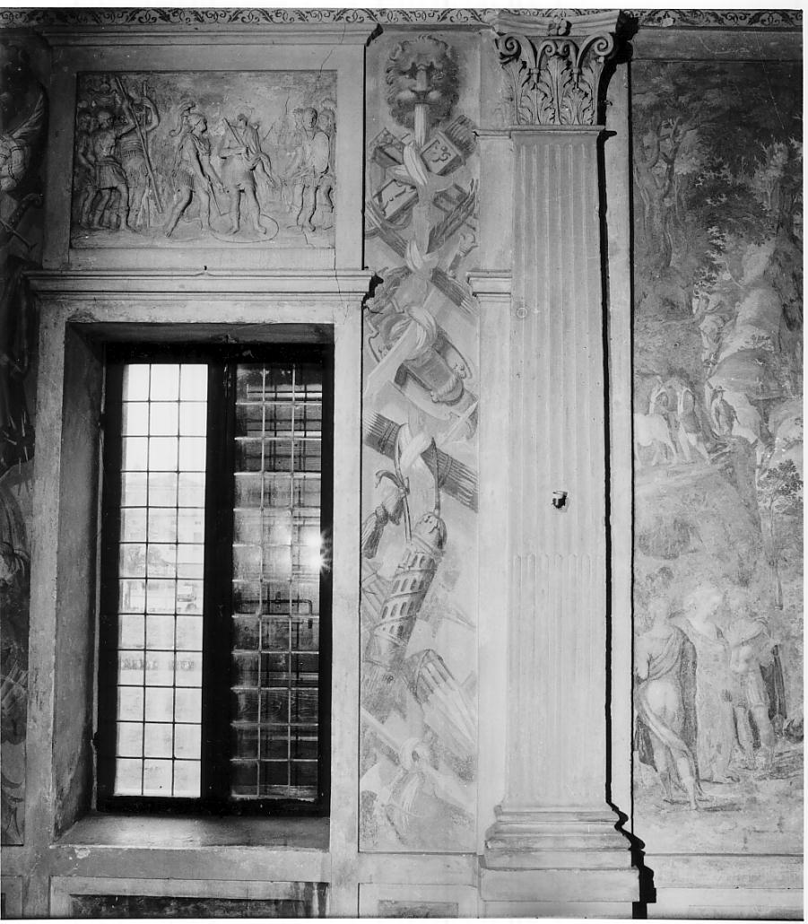 - NOTIZIE STORICO CRITICHE Già il Puerari notava la evidente affinità stilisticadi questa serie di bassorilievi con gli altri bassorilievi a stucco dell'attigua Sala di Enea, ma li attribuiva, senza fondati motivi, ad Alberto Cavalli. Il Lamo invece ebbe a specificare, come testimone diretto, l'esecuzione di "alcune figure molto riguardevoli... di stucco", nella Sala di Enea da parte di Bartolomeo Conti, mantovano. L'antica attribuzione va certamente tenuta nel debito conto; poichè il Lamo non menzionò la sala degli Specchi, possiamo dedurre che il relativo lavoro di decorazione sia avvenuto dopo il 1591, anno della morte del committente Vespasiano Gonzaga