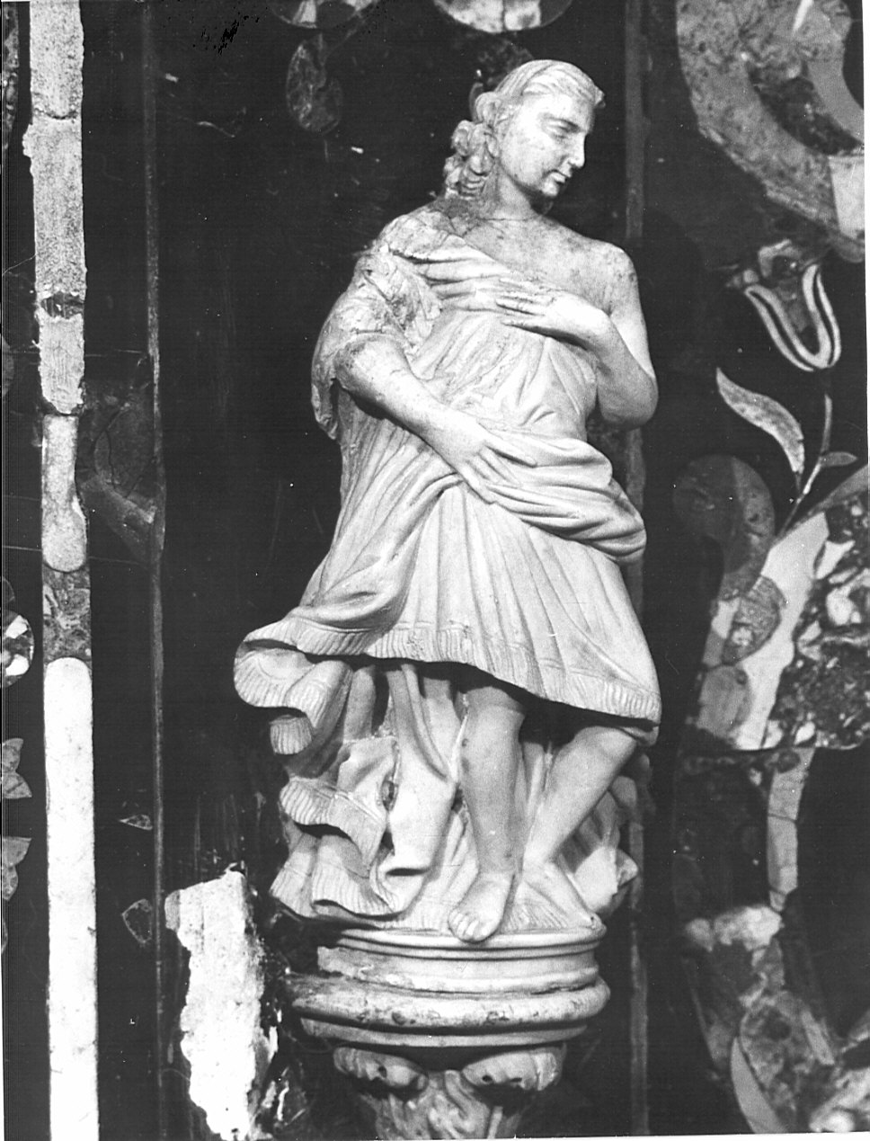 La statua in marmo bianco, a tutto tondo, è collocata sul lato sinistro del paliotto e poggia su una piccola mensola