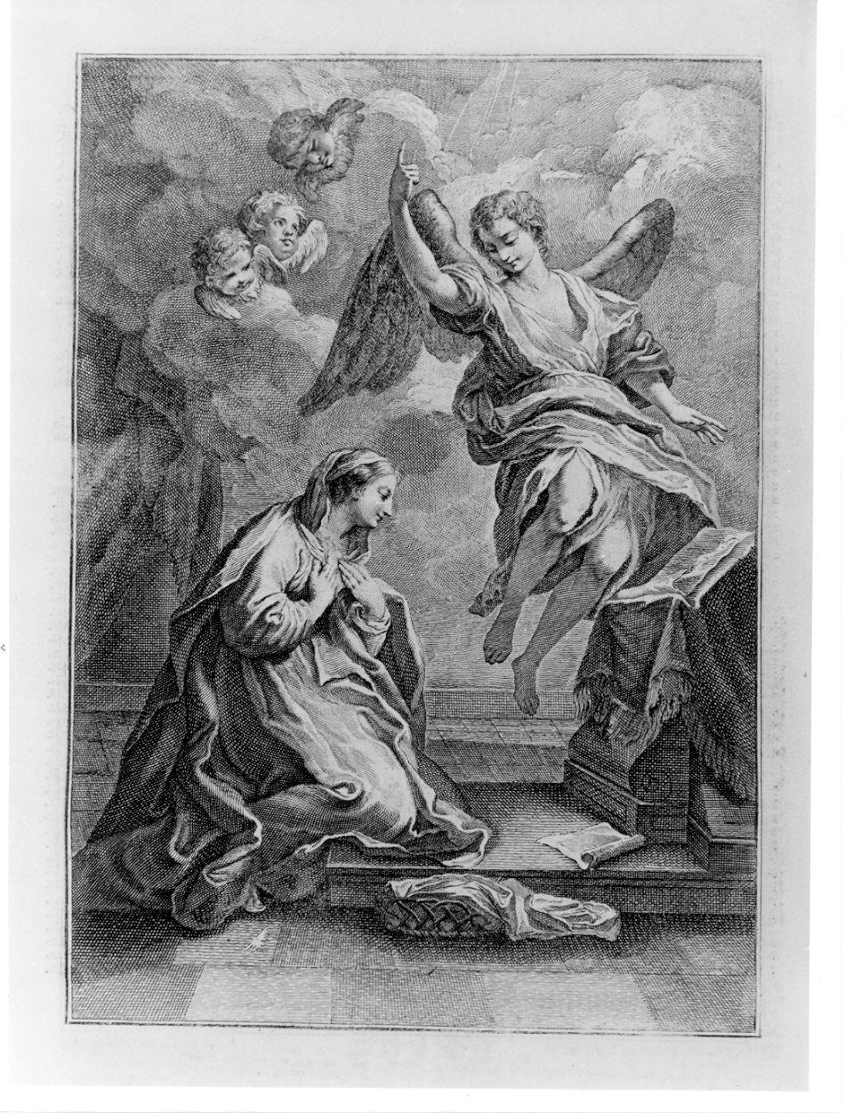 Personaggi: Madonna; Angelo annunciante. Figure: putti