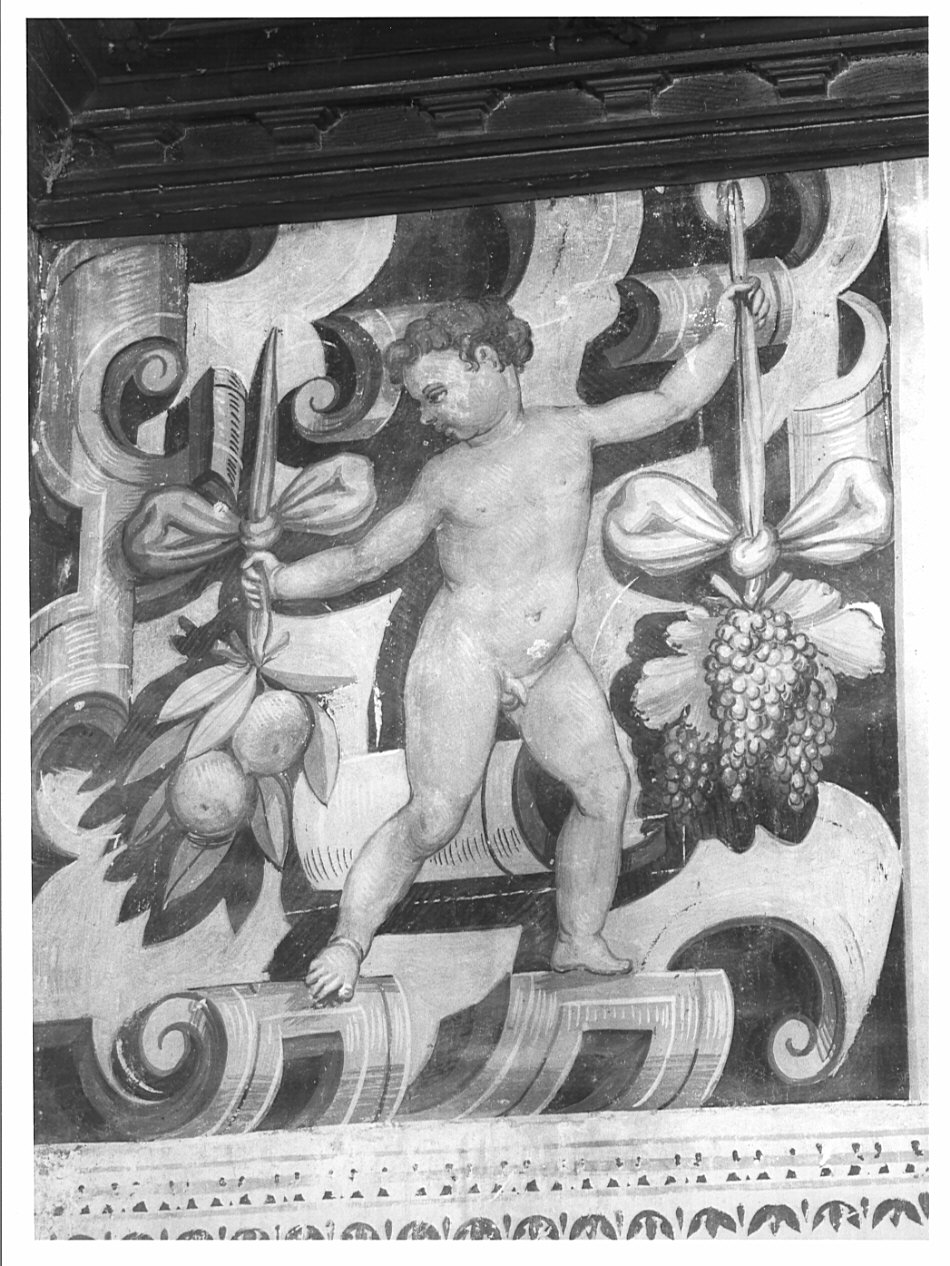 Figure: putti. Vegetali: zucca; mela cotogna; uva