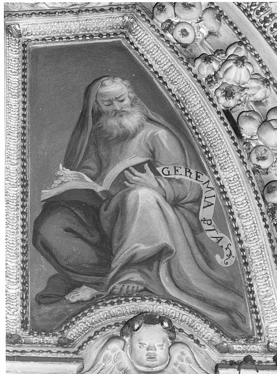 - ISCRIZIONI Entro un cartiglio appoggiato su braccio sinistro del profeta - GEREMIA PTA - lettere capitali -