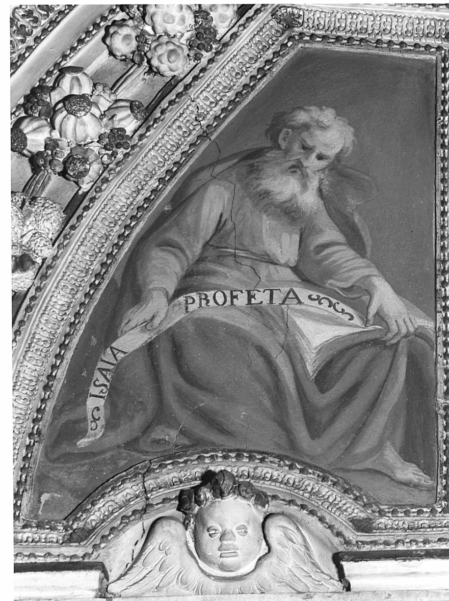 - ISCRIZIONI Entro un cartiglio appoggiato sulle gambe del profeta - ISAIA PROFETA - lettere capitali -