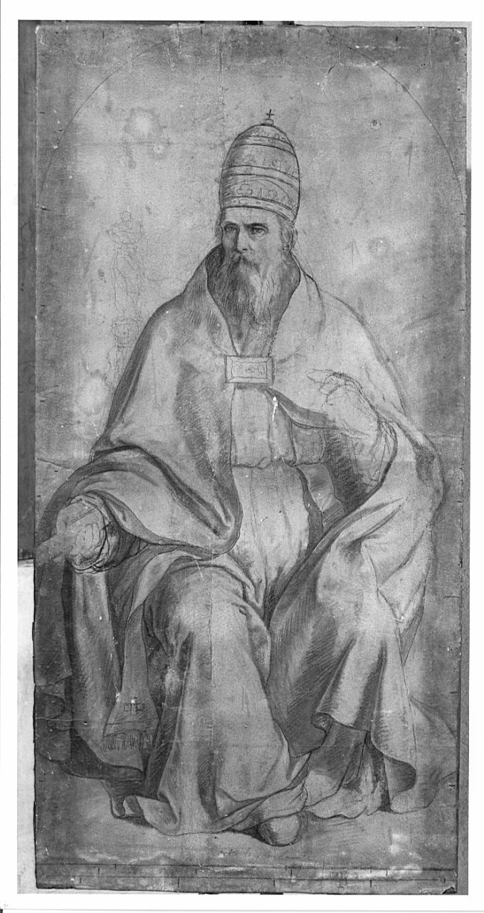 Personaggi: Papa. Abbigliamento religioso: piviale; stola; tiara. Mobilia: sedia con schienale. Oggetti: rotolo di carta