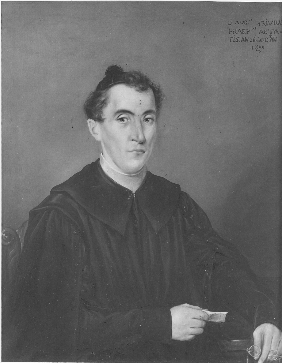 - NOTIZIE STORICO CRITICHE Il dipinto ritrae il prevosto Agostino Brivio, nato nel 1808 e morto nel 1844 e dall'aprile del 1835 parroco in S. Alessandro. L'intervento del 1848 cita il quadro riferendolo a tale Meneghetti di cui però non è stato possibile rintracciare notizie. Il dipinto reca una corncie di legno dorato con palmette e volute ai quattro angoli